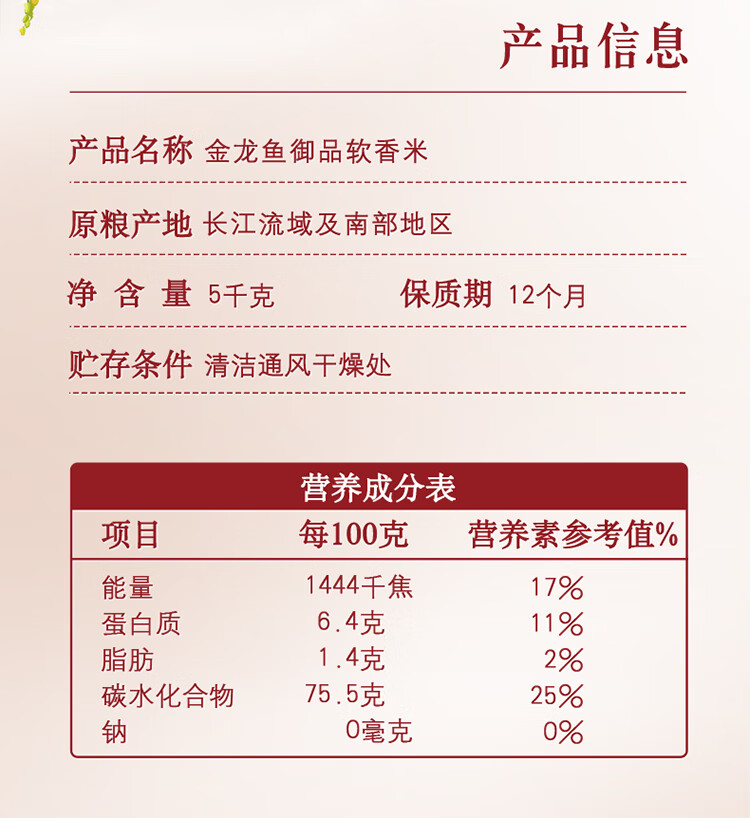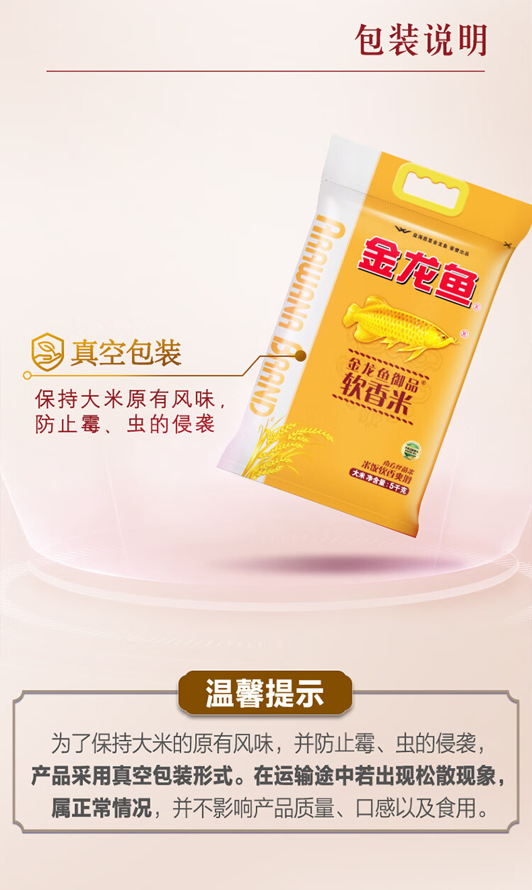 商品名称:金龙鱼御品软香米5kg