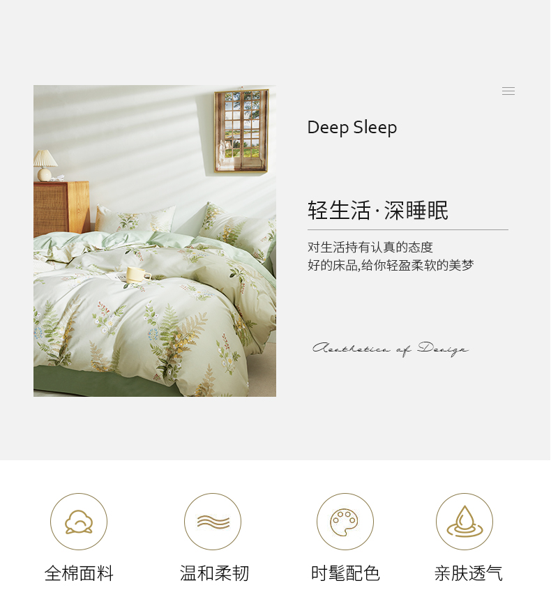 KINTHERI/金丝莉花月晨夕全棉民宿床品四件套200*230cm