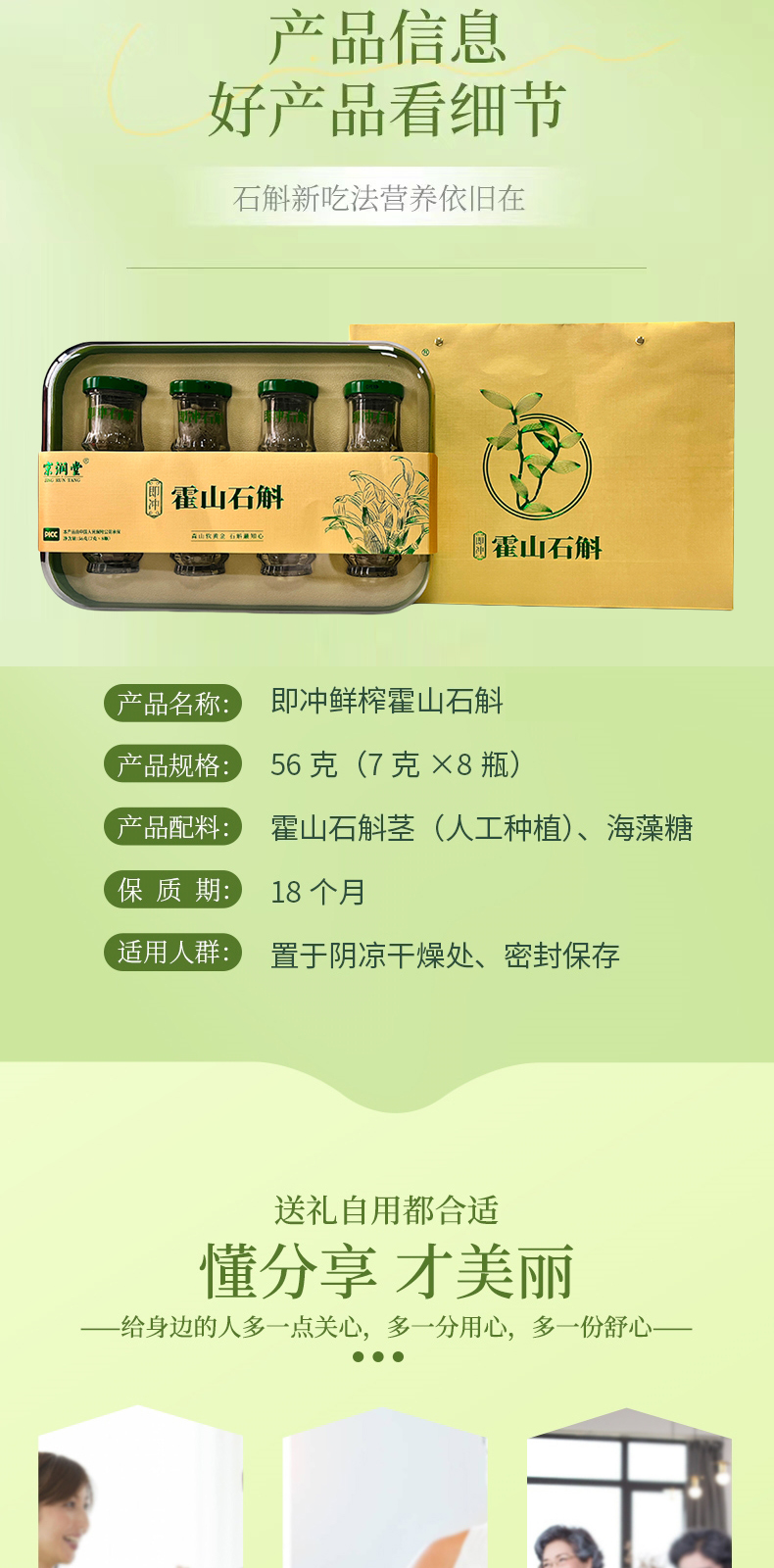 商品名称:【京东配送】京润堂即冲鲜榨霍山石斛礼盒56g