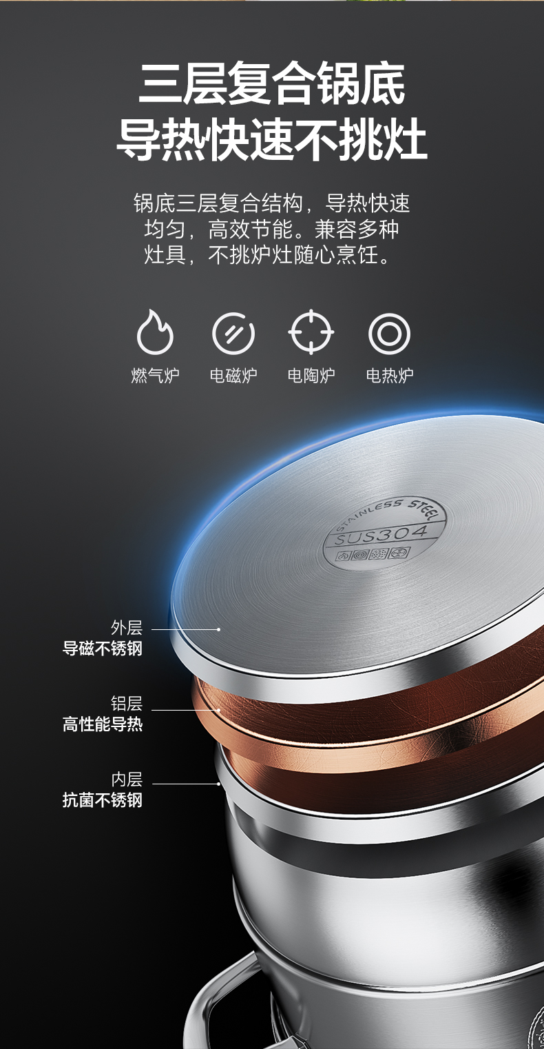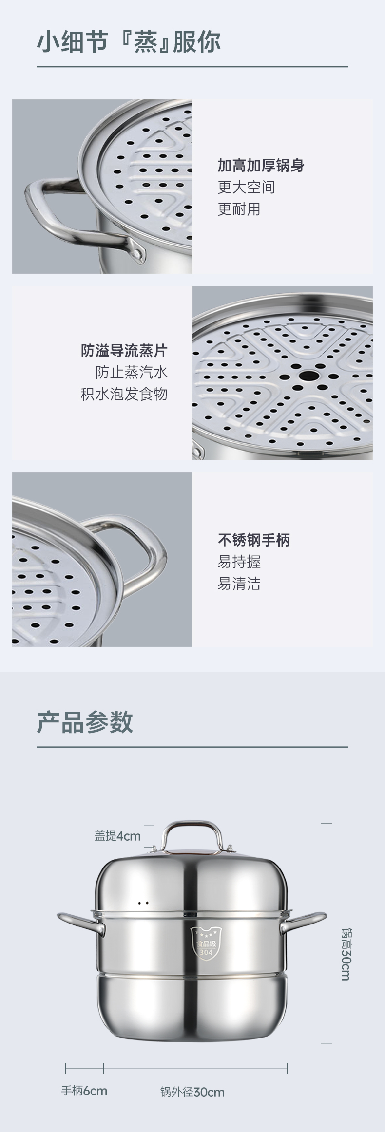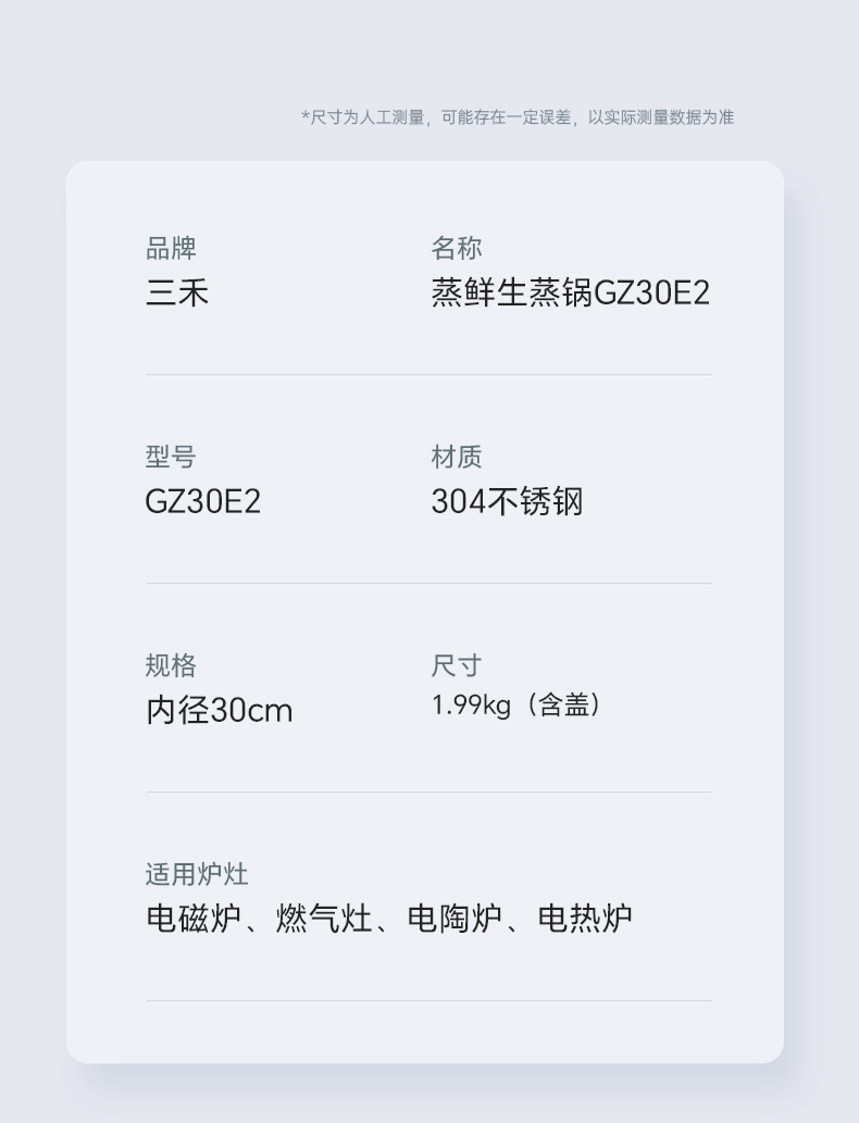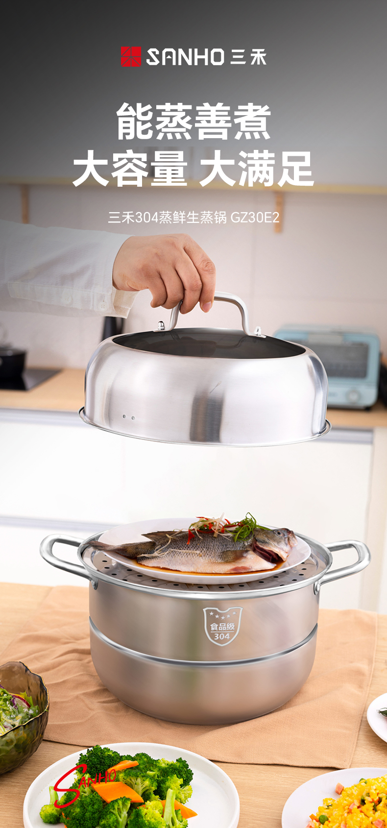商品名称:SANHO/三禾30cm蒸鲜生蒸锅GZ30E2