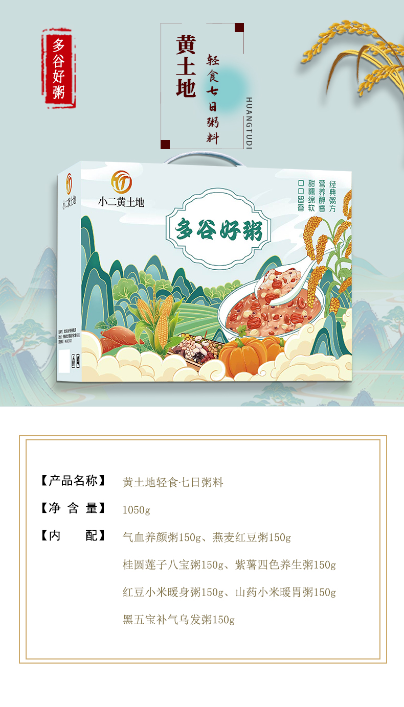 商品名称:小二黄土地黄土地轻食七日粥料礼盒1050g