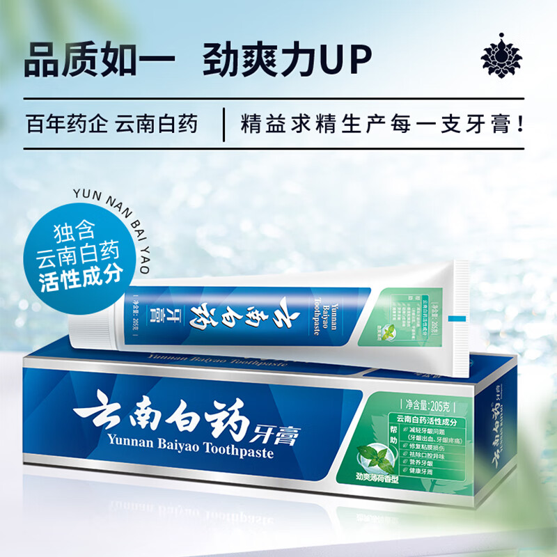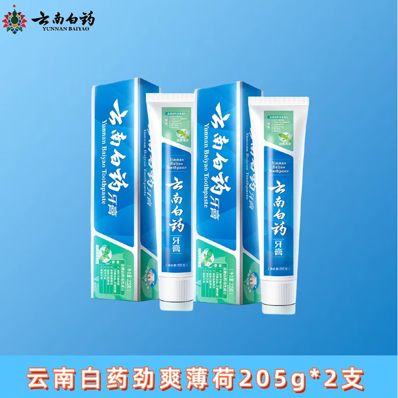 商品名称:【京东/顺丰配送】云南白药劲爽薄荷牙膏205g*2支