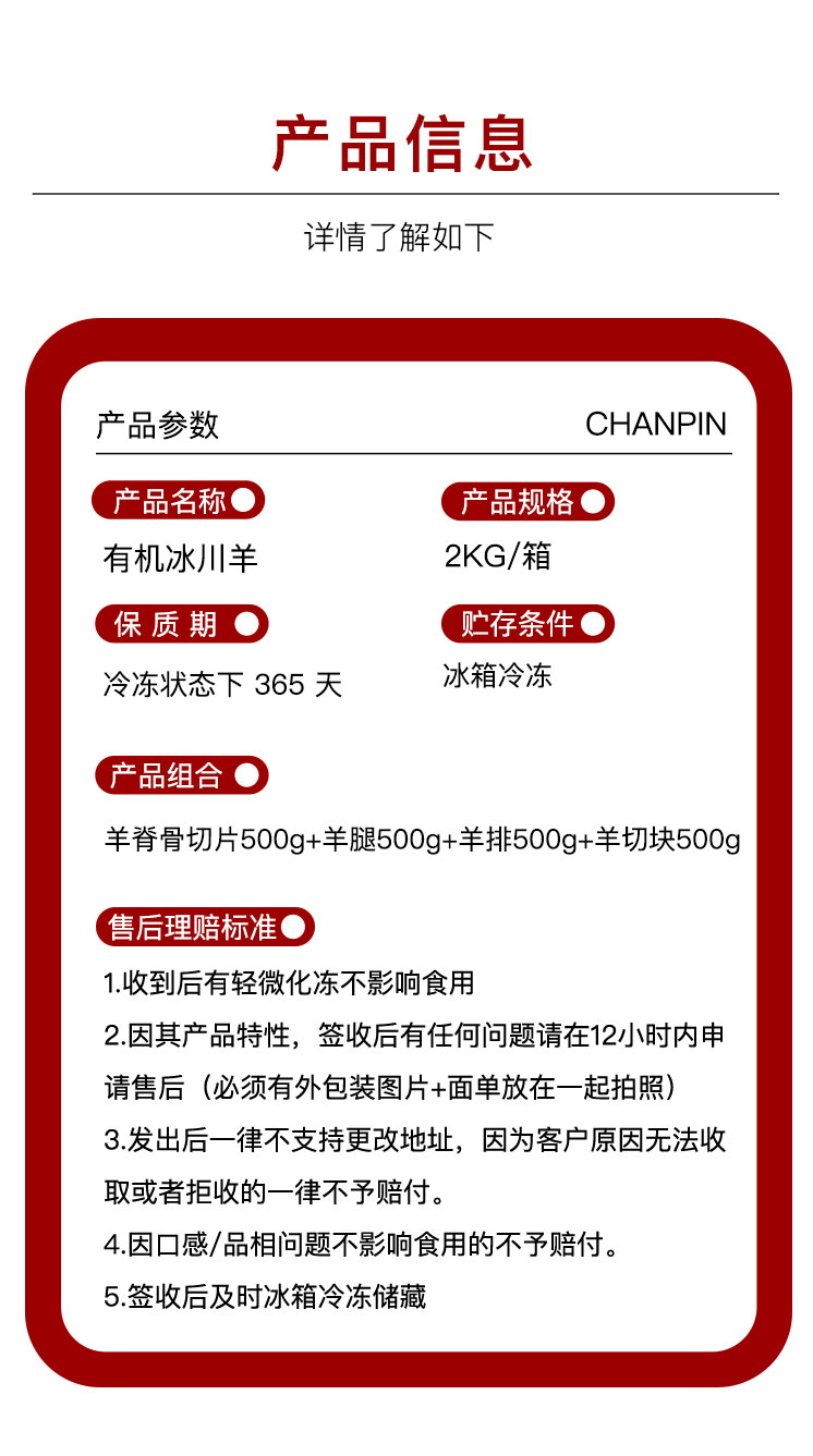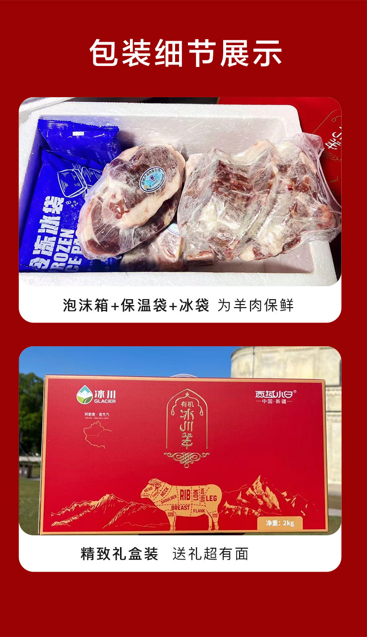 商品名称:【顺丰配送】西域小白新疆有机冰川羊肉礼盒2kg