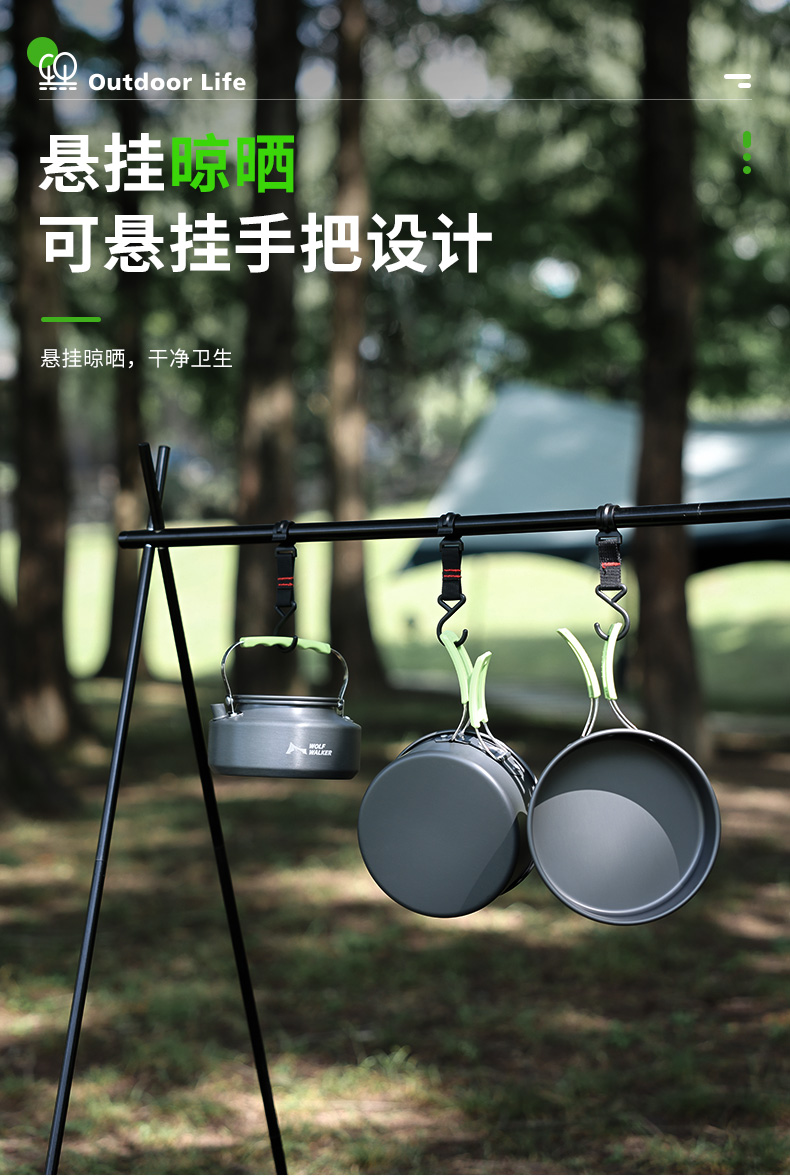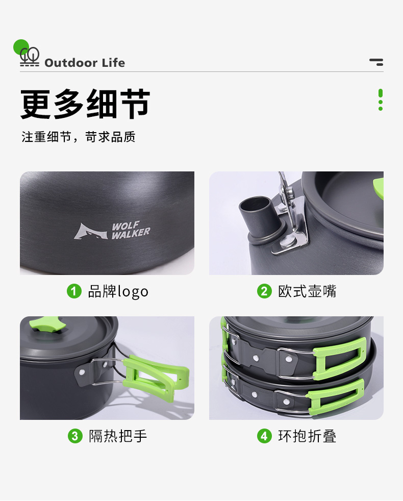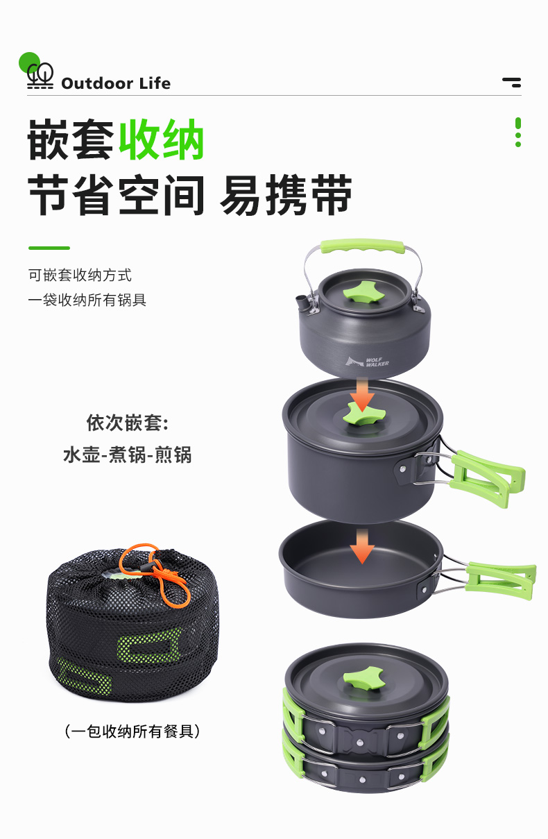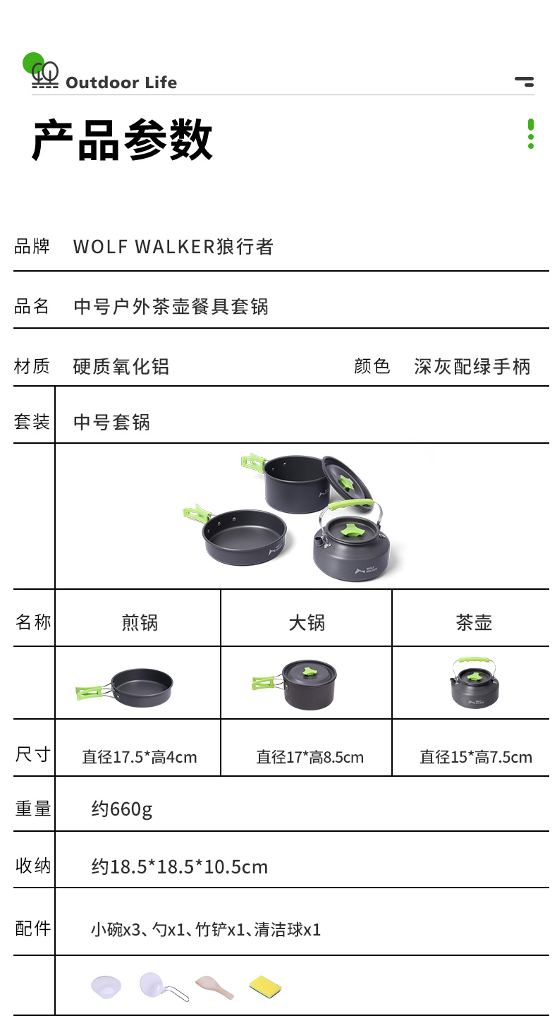 商品名称:WOLF WALKER/狼行者中号户外茶壶餐具锅具三件套lxz-8102-1201
