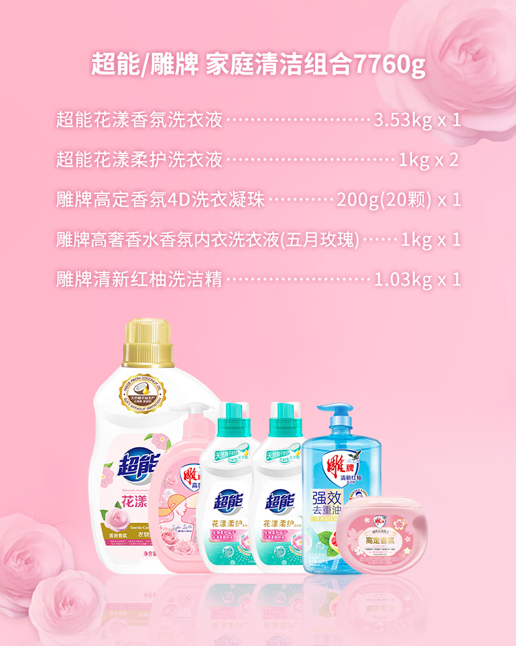 商品名称:【京东/顺丰配送】超能/雕牌家庭清洁组合7760g