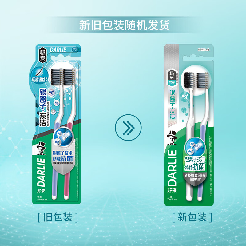 【京东/顺丰配送】DARLIE/好来银离子炭洁牙刷2支装*3板 新老包装随机不接受指定