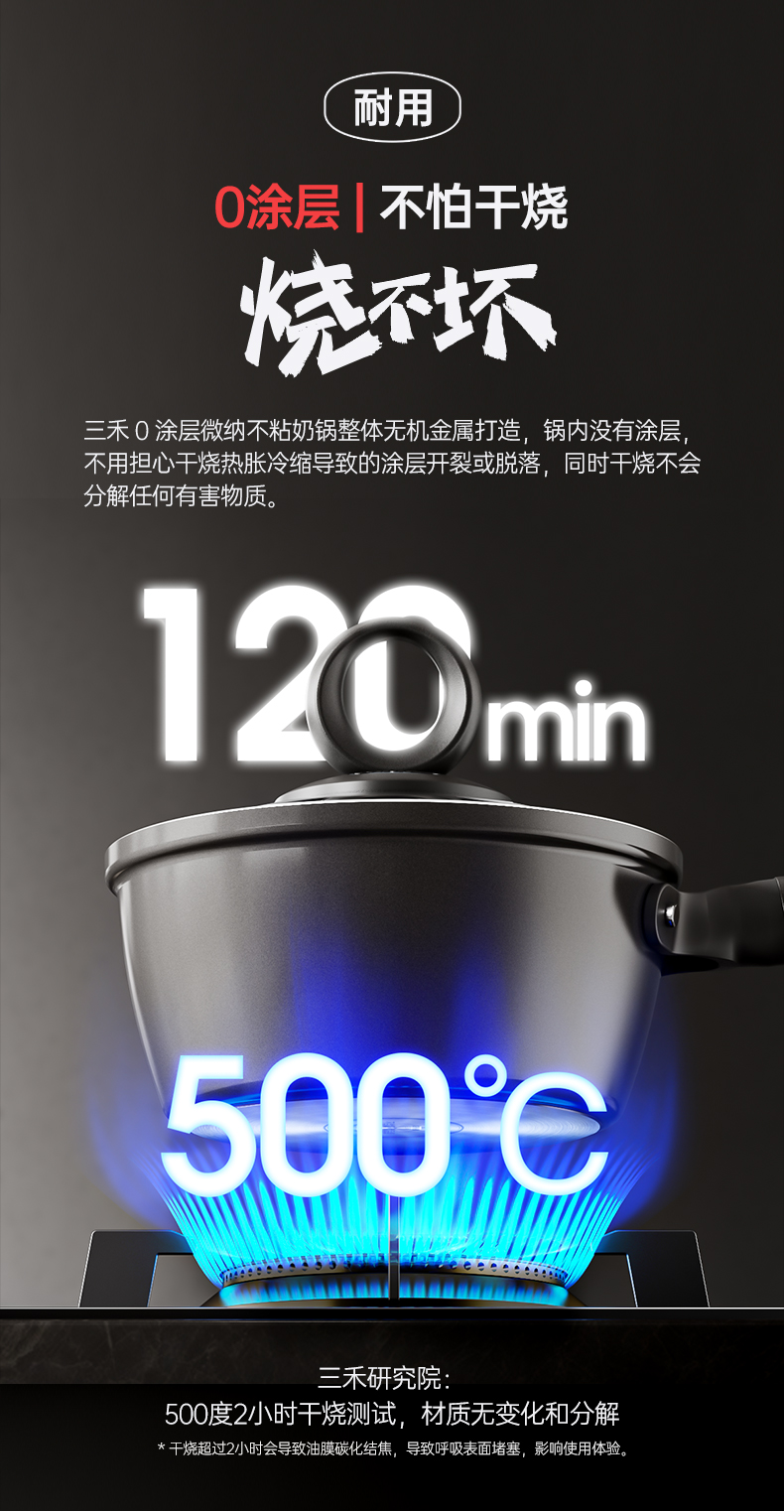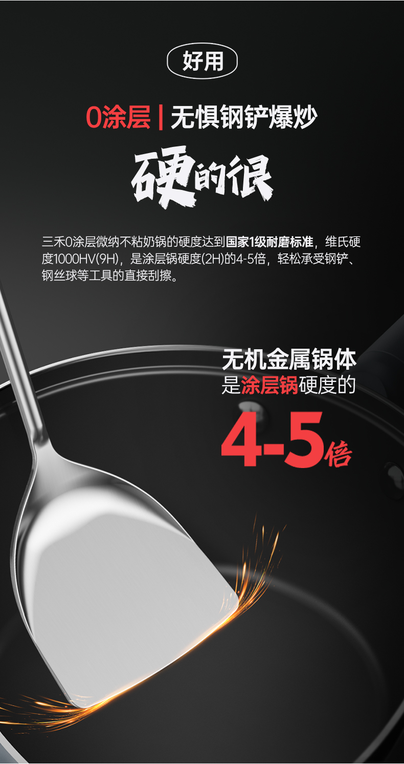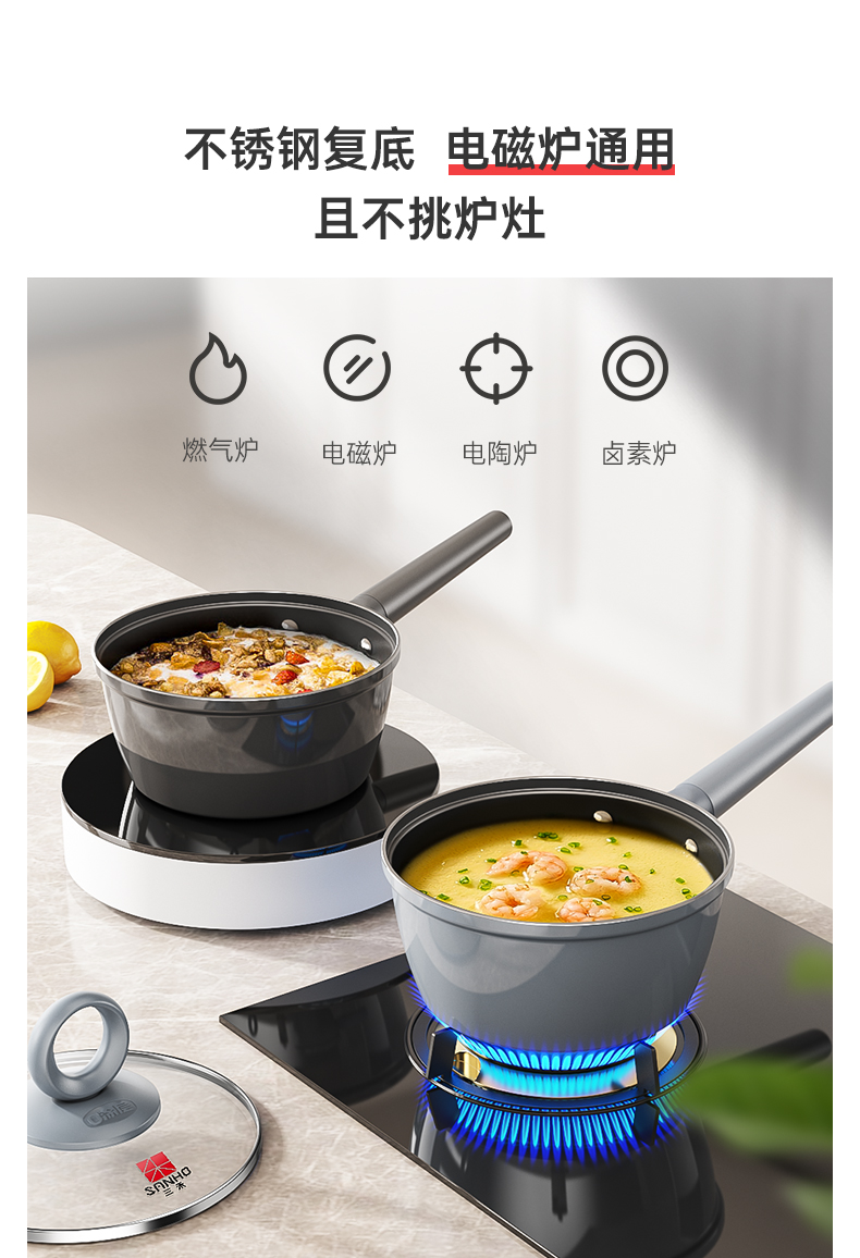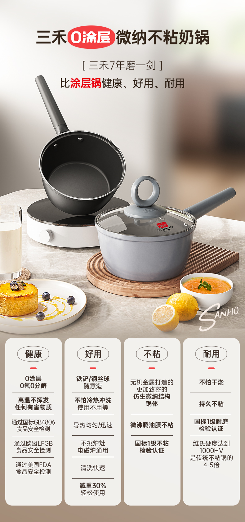 SANHO/三禾18cm0涂层微纳不粘奶锅LN18S1