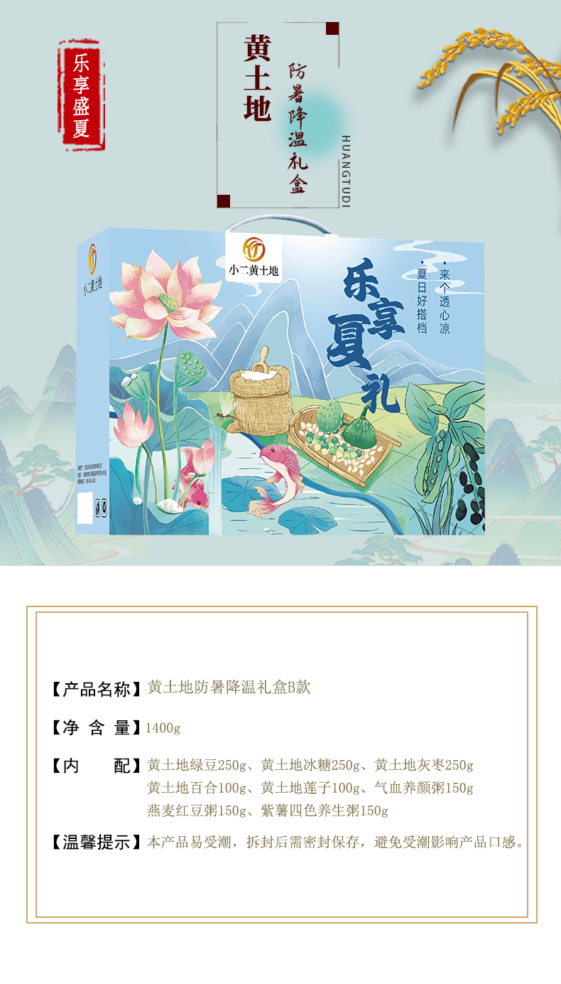 商品名称:【顺丰配送】小二黄土地黄土地B款防暑降温食品礼盒1400g