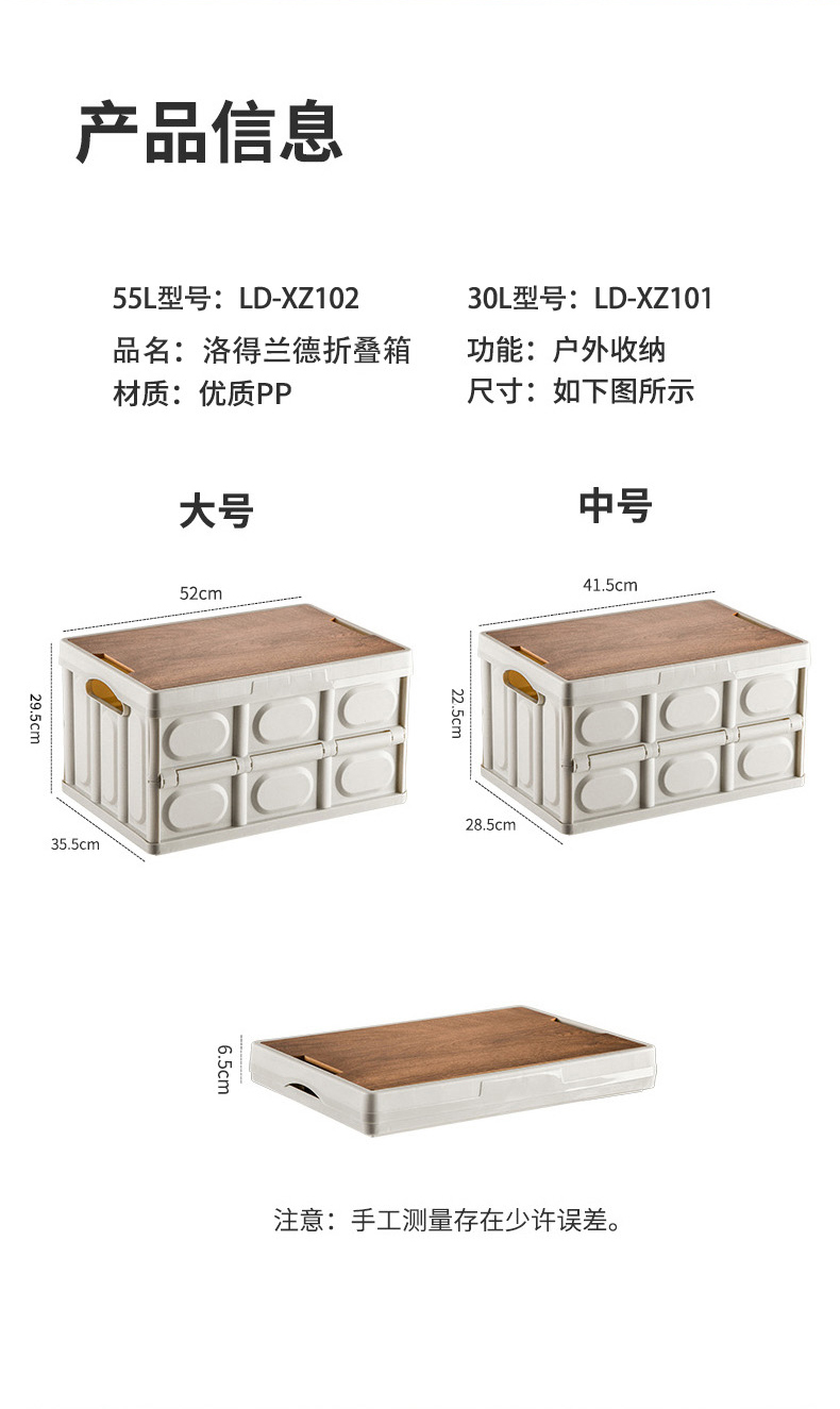 商品名称:ROADLAND/洛得兰德户外收纳折叠箱木盖款-白色