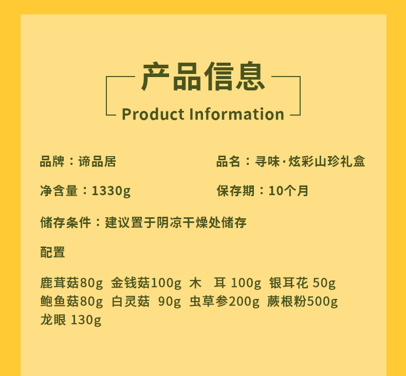商品名称:谛品居寻味炫彩八角铁盒山珍礼盒1330g