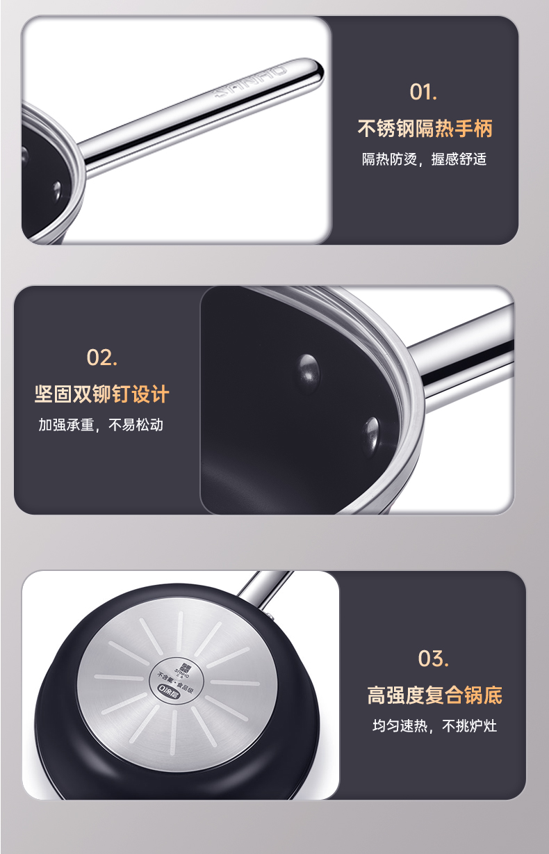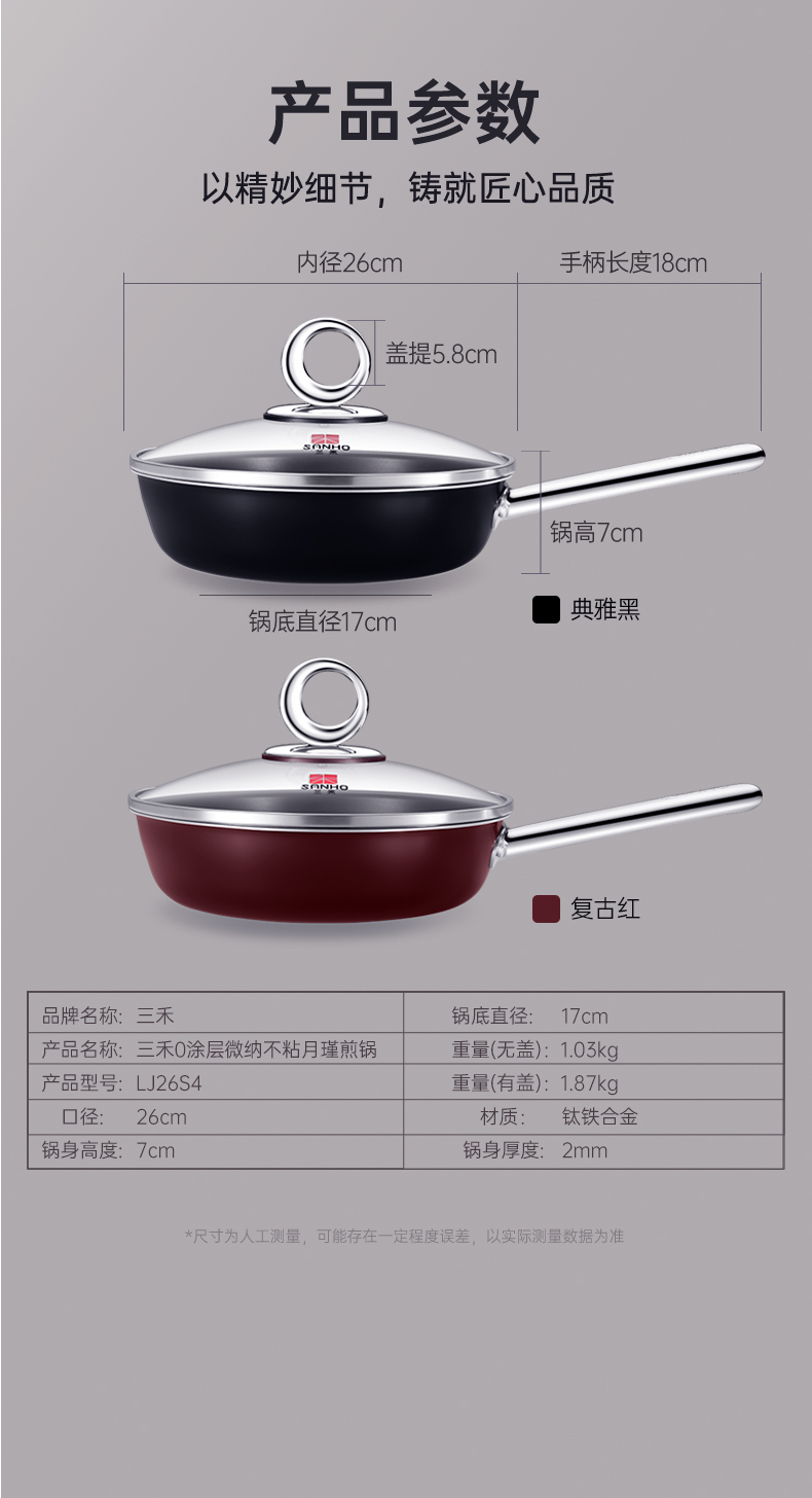 商品名称:SANHO/三禾26cm0涂层不粘月瑾系列炒锅