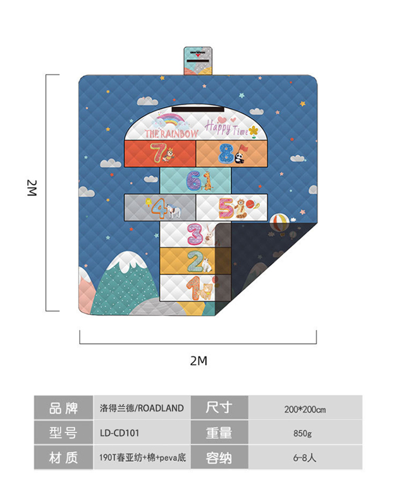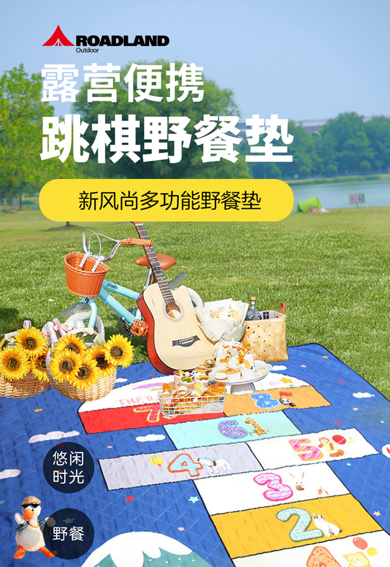 商品名称:ROADLAND/洛得兰德户外露营便携跳棋野餐垫2*2M