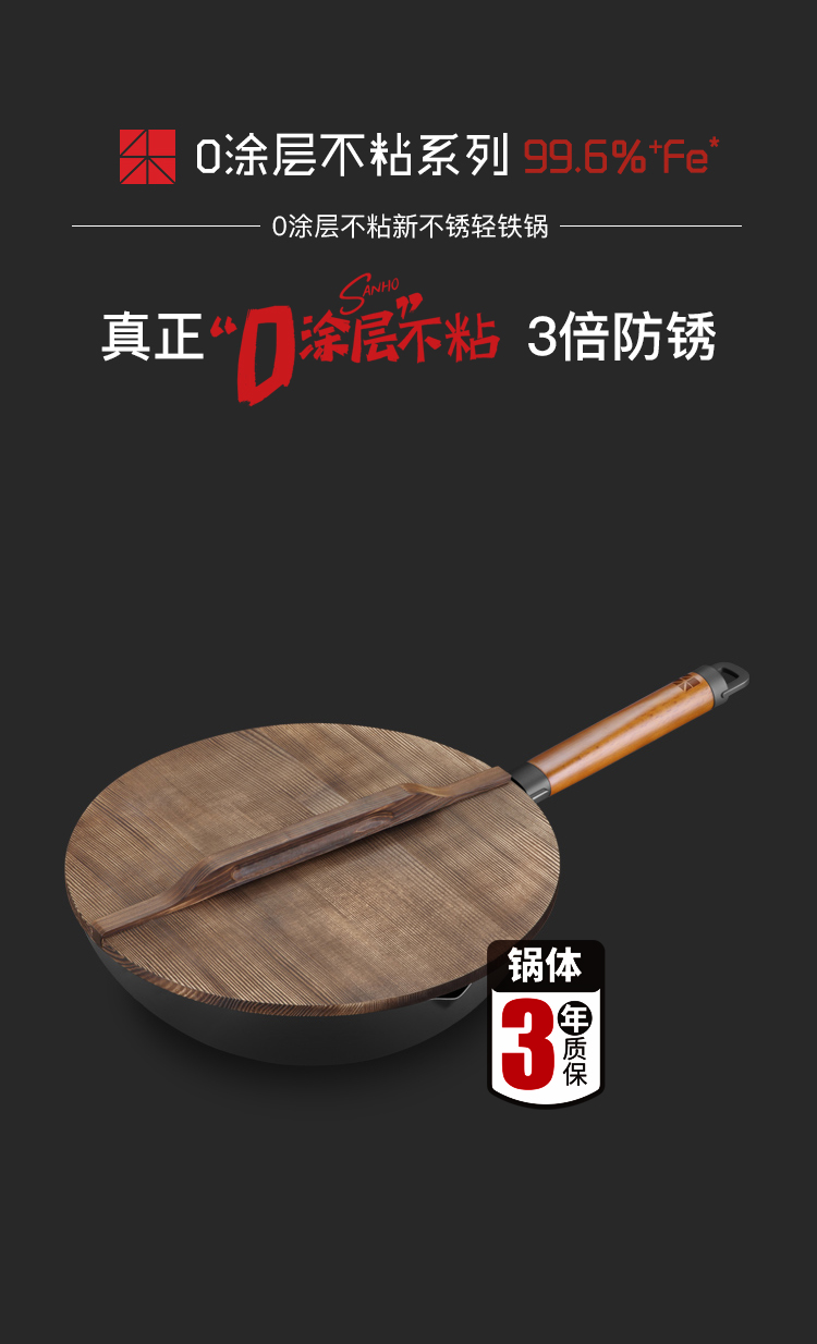 商品名称:SANHO/三禾0涂层不粘新不锈轻铁锅