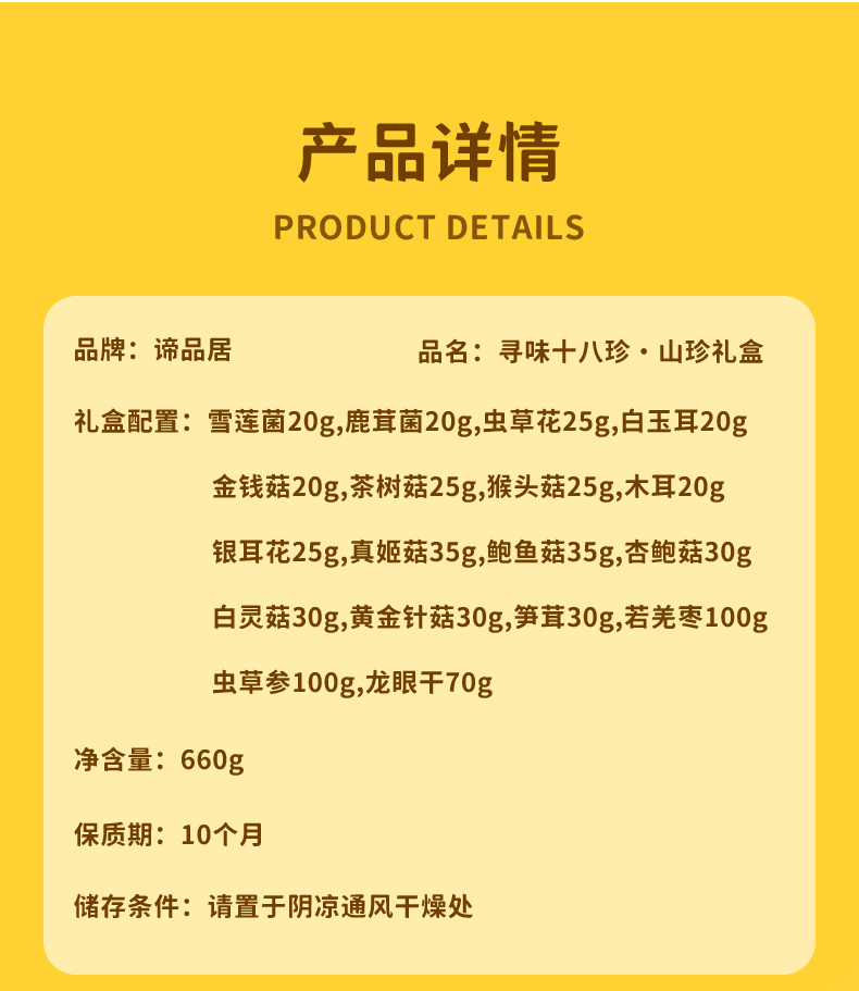 商品名称:谛品居寻味十八珍山珍礼盒660g