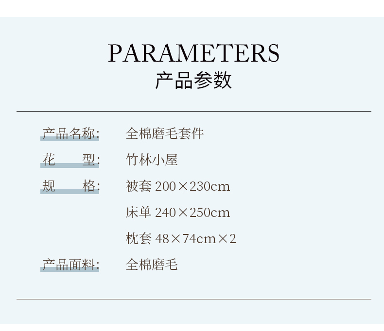 商品名称:KINTHERI/金丝莉竹林小屋全棉磨毛床品四件套200*230cm