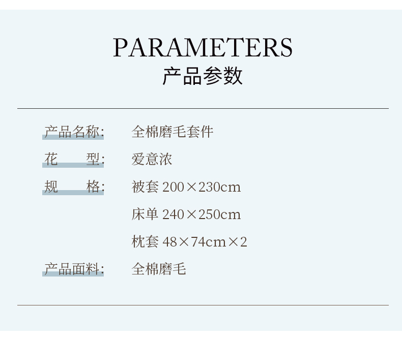 商品名称:KINTHERI/金丝莉爱意浓全棉磨毛床品四件套200*230cm