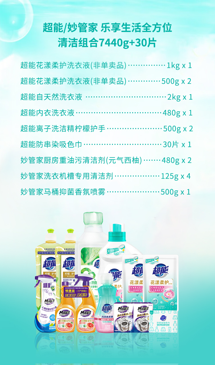 商品名称:【京东/顺丰配送】超能/妙管家乐享生活全方位清洁组合7440g+30片