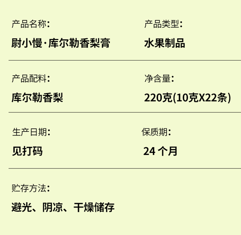 商品名称:尉小慢库尔勒香梨膏220g