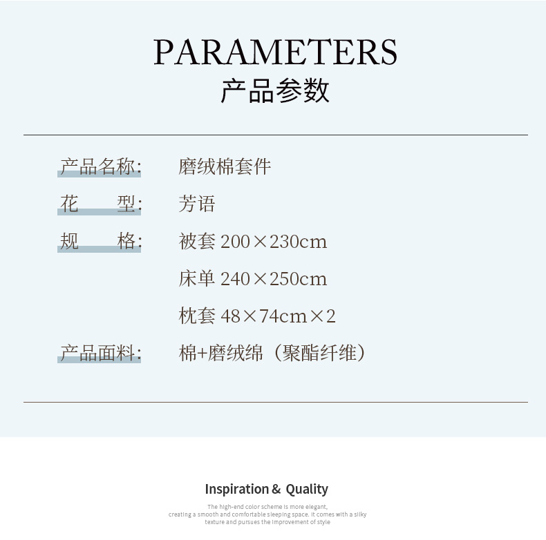 商品名称:KINTHERI/金丝莉芳语磨绒棉床品四件套200*230cm