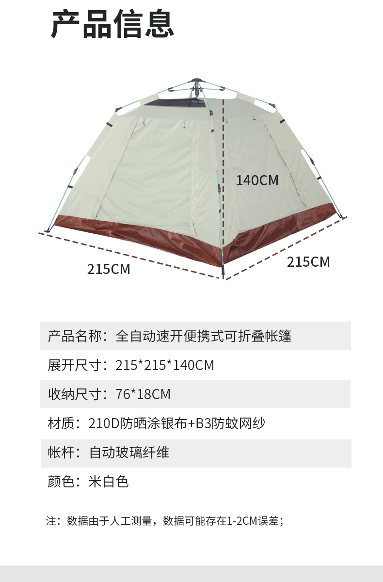 商品名称:ROADLAND/洛得兰德全自动速开便携式可折叠帐篷-米白色