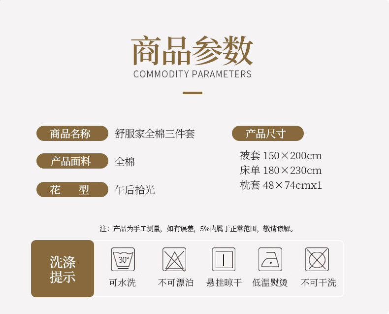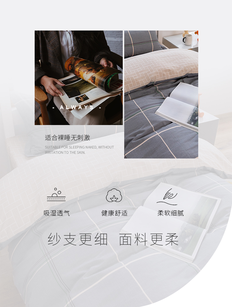 商品名称:KINTHERI/金丝莉午后拾光舒服家全棉床品三件套150*200cm