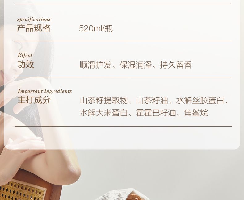 商品名称:森之露山茶籽蓬松柔顺护发素(彩盒)520ml