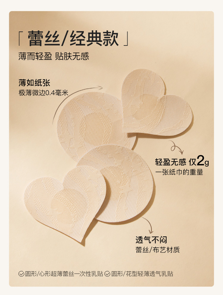 【轻薄隐形】10对装超薄蕾丝一次性乳贴防走光防凸点便携胸贴 575808