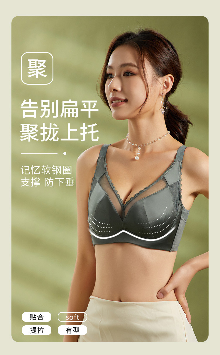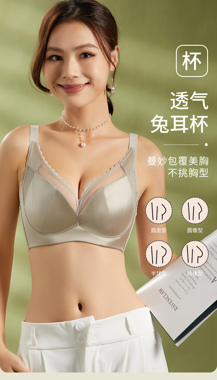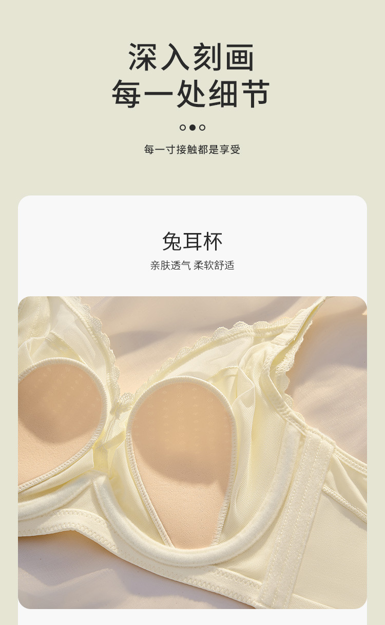商品名称:【大胸显小】性感软钢圈兔耳杯文胸女士内衣聚拢防下垂收副乳胸罩 004299