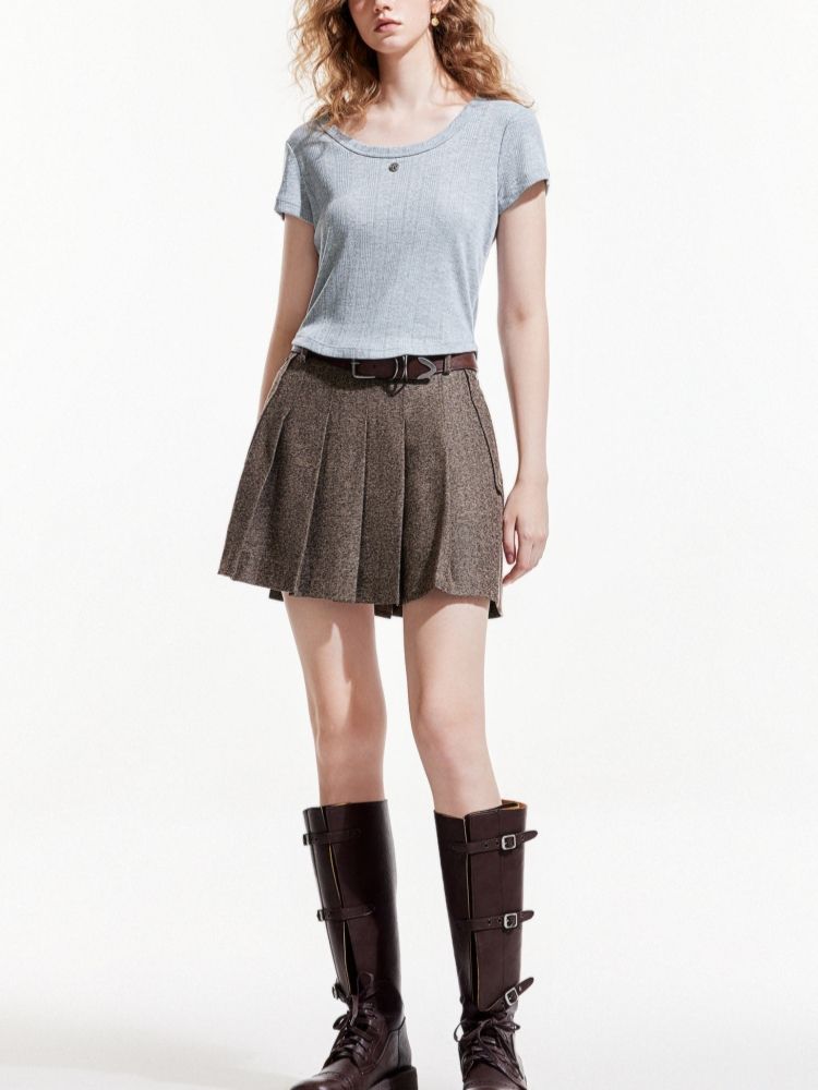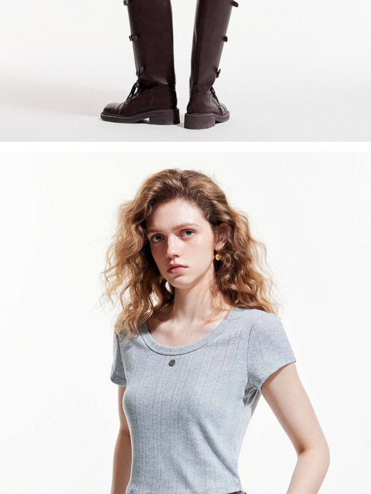 【轻薄正肩】2025夏季时尚休闲舒适正肩短款短袖T恤女 393818