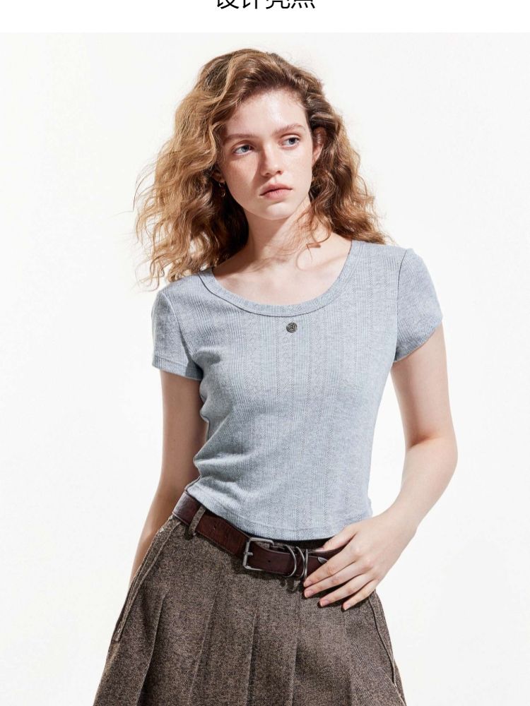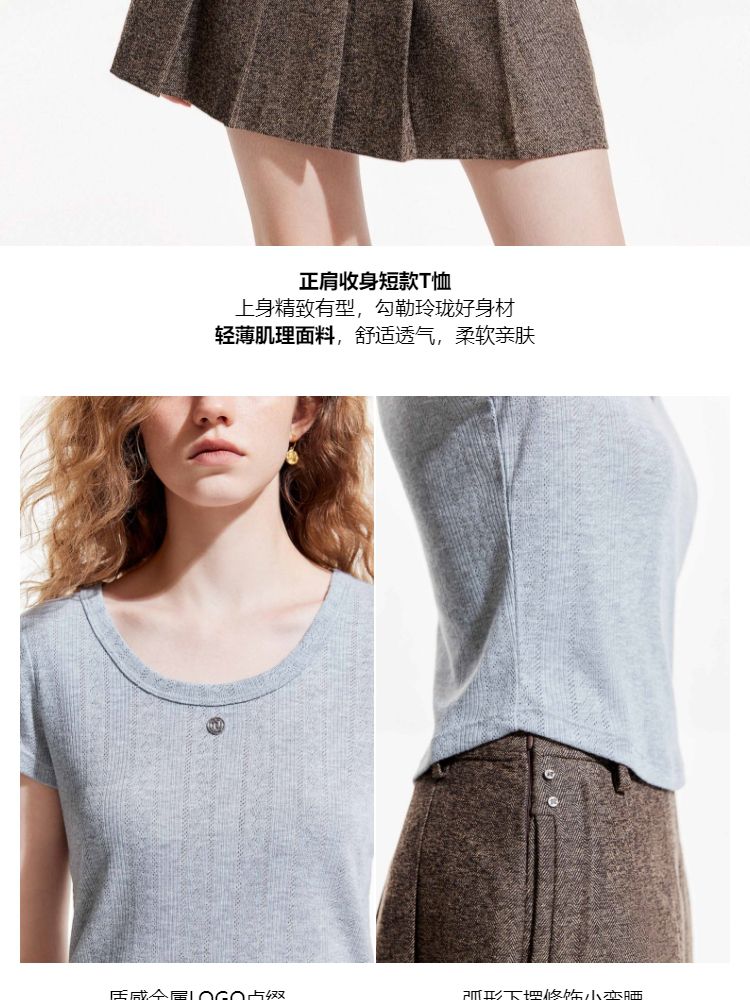 商品名称:【轻薄正肩】2025夏季时尚休闲舒适正肩短款短袖T恤女 393818