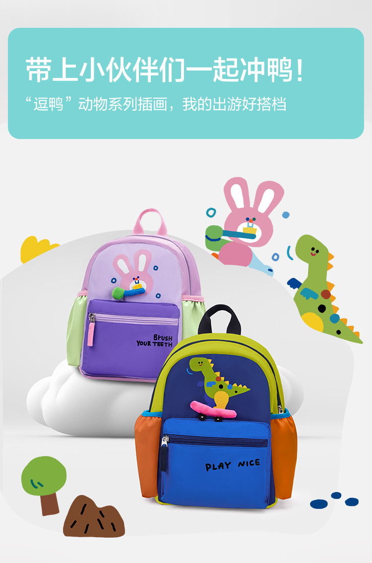 商品名称:开学季儿童书包男童女童双肩包幼儿园上学出游轻便背包休闲萌趣夏 203397