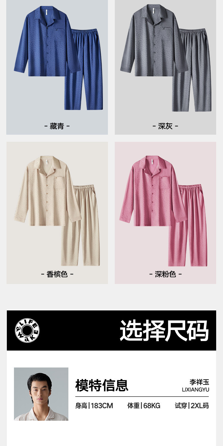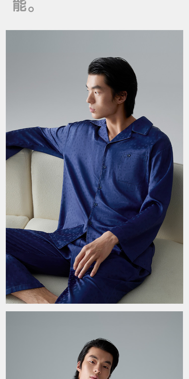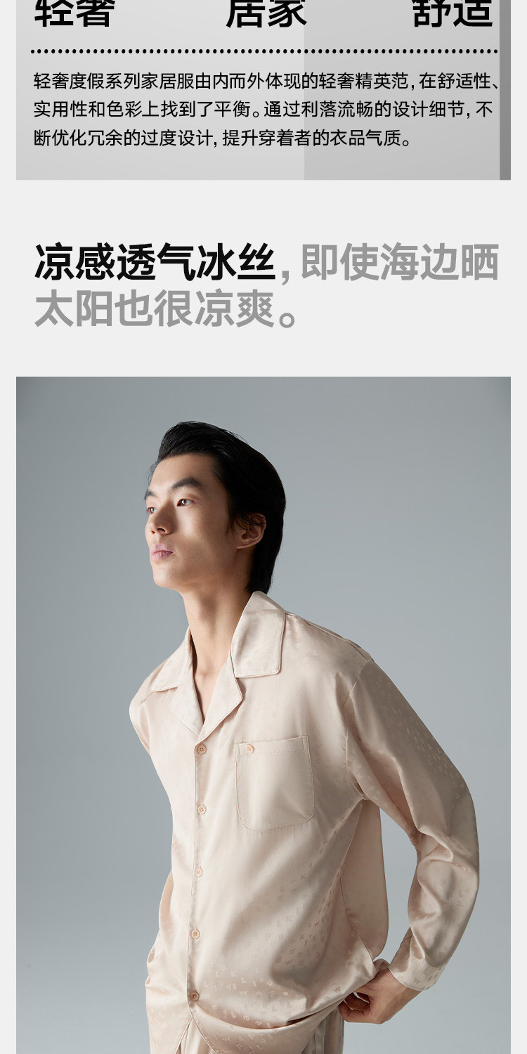 商品名称:【轻奢系列】男士冰丝翻领家居服套装高端休闲睡衣男长袖可外穿 488474