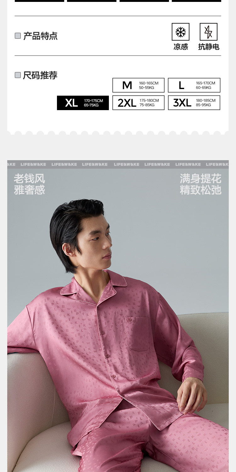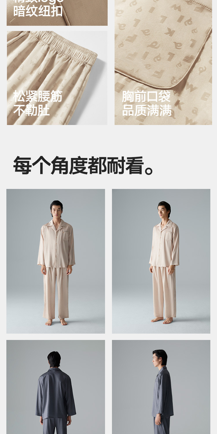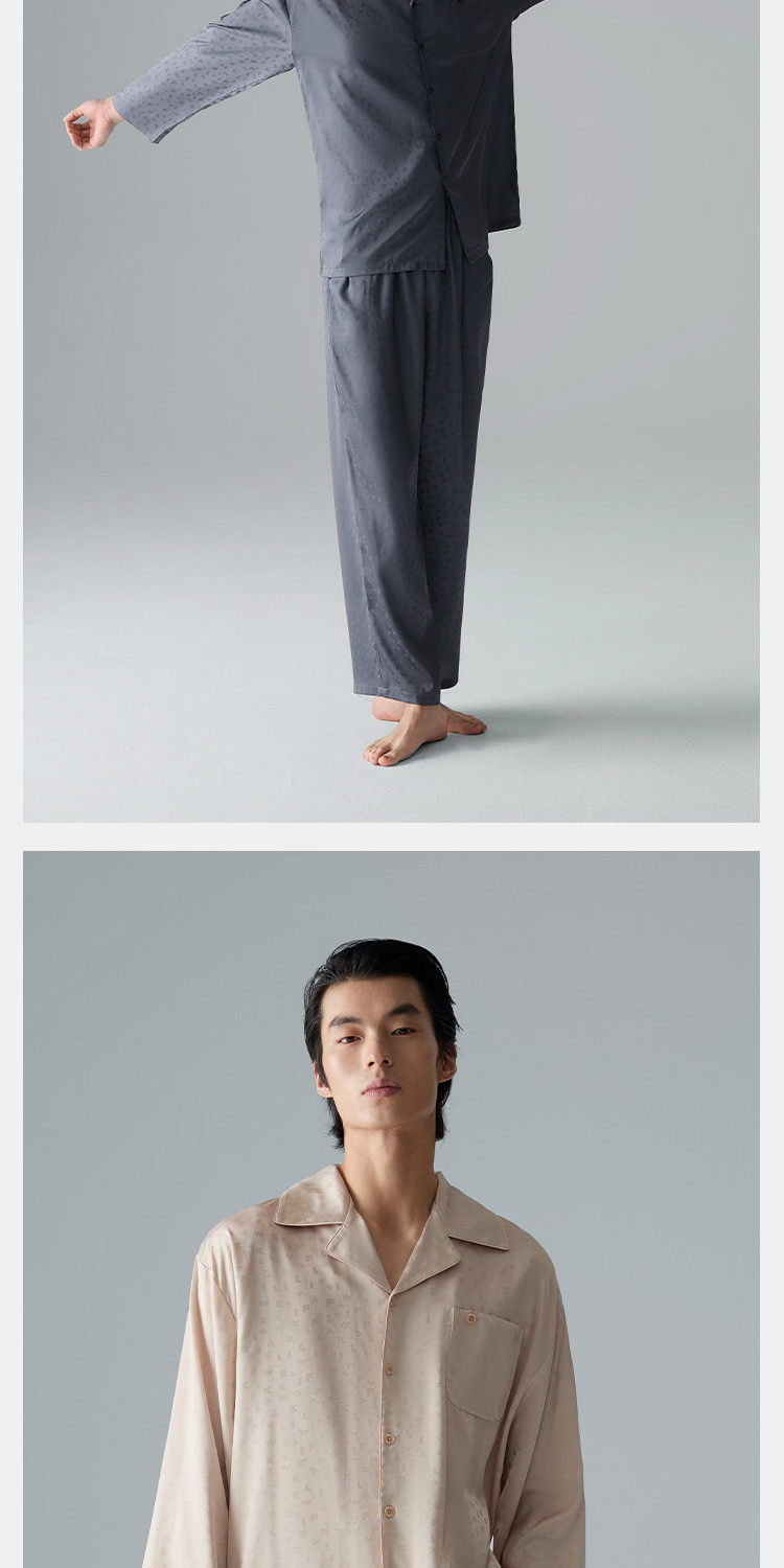 商品名称:【轻奢系列】男士冰丝翻领家居服套装高端休闲睡衣男长袖可外穿 488474