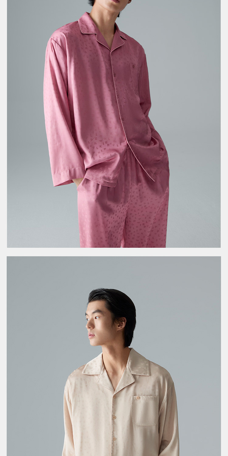 【轻奢系列】男士冰丝翻领家居服套装高端休闲睡衣男长袖可外穿 488474