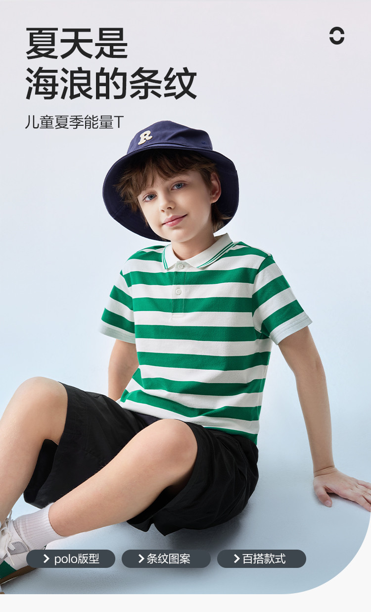 商品名称:时尚条纹儿童T恤男童短袖夏装POLO衫2025新款童装上衣 775941
