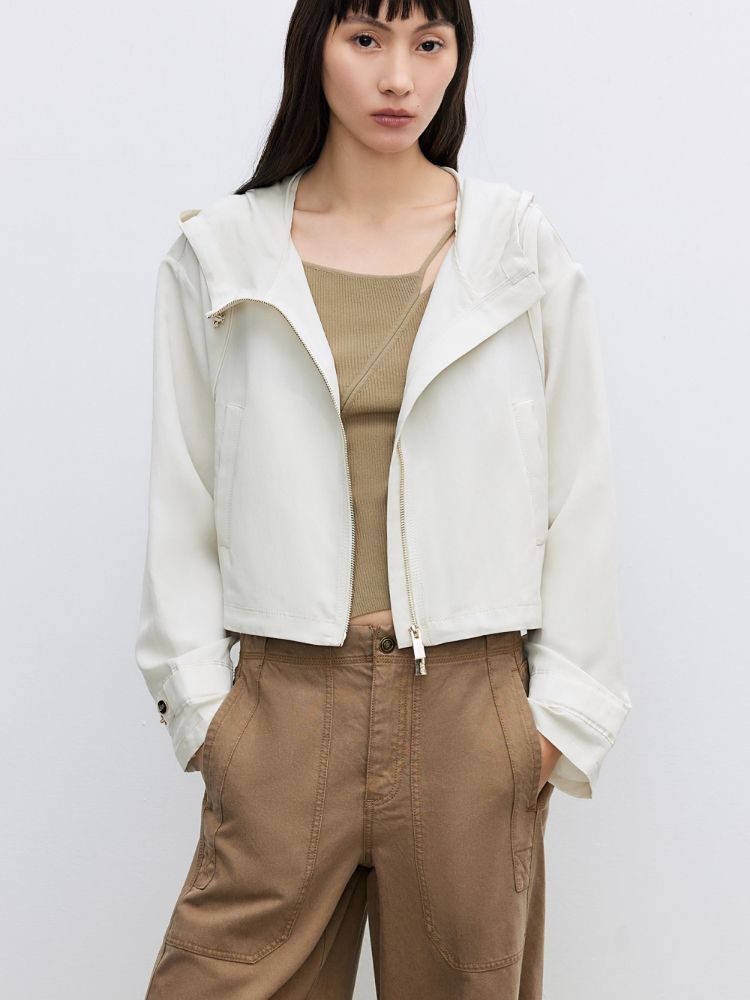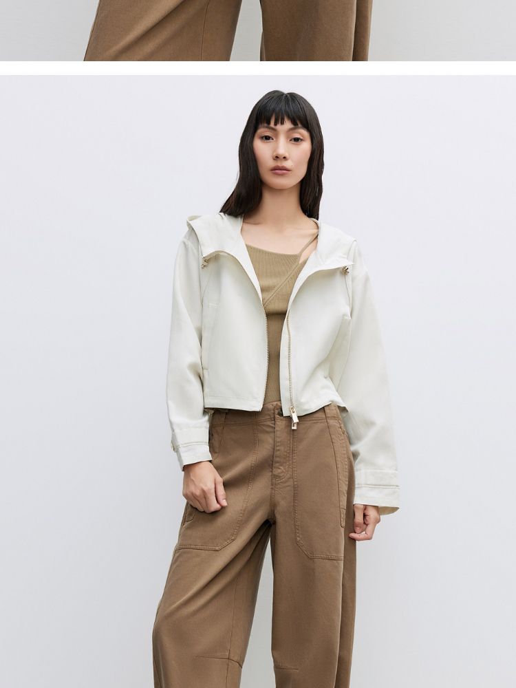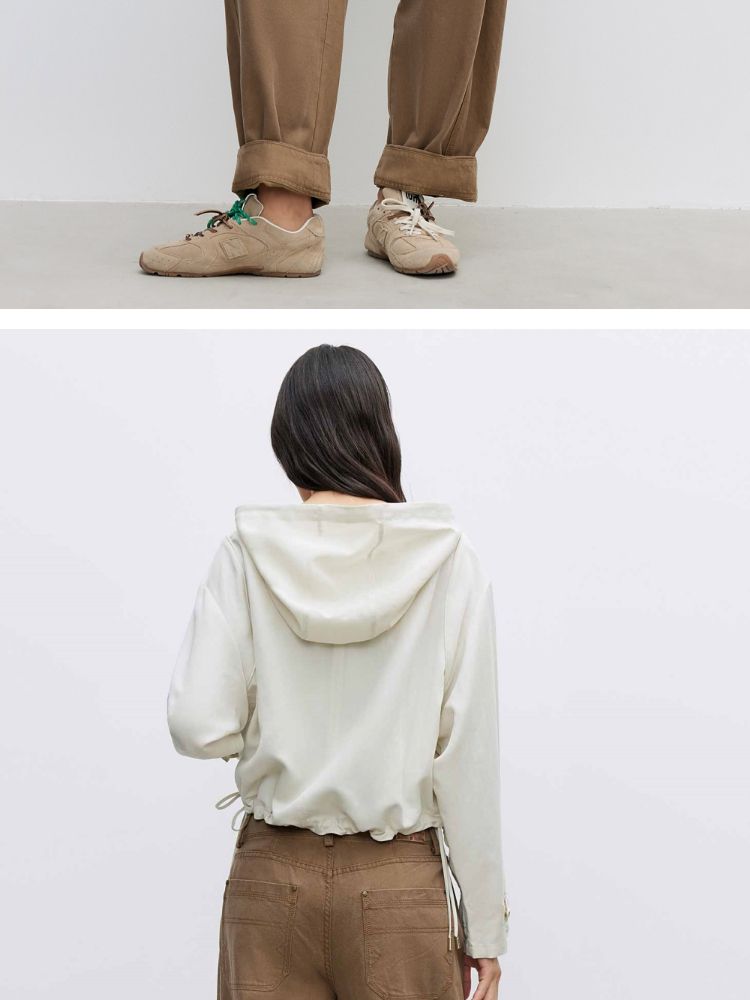商品名称:【开衫风衣外套】2025夏季纯色连帽落肩宽松开衫风衣外套女 078042