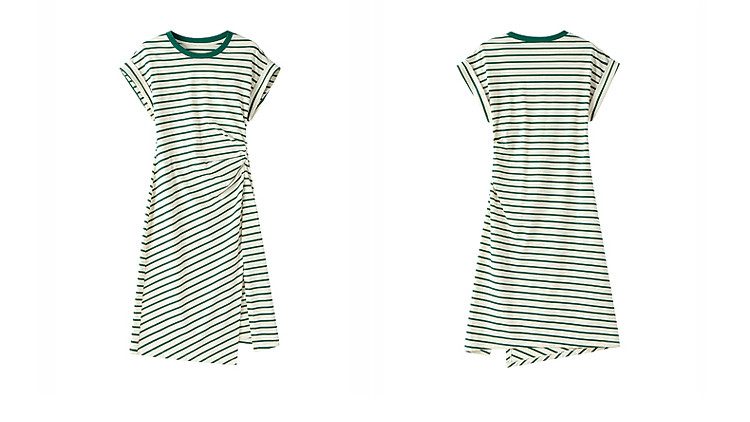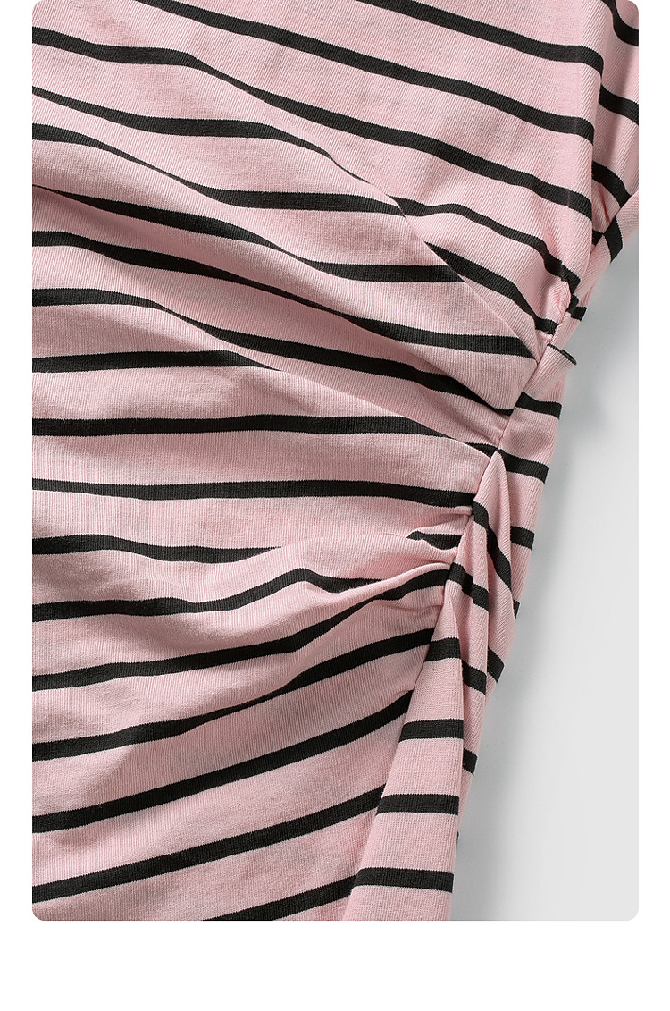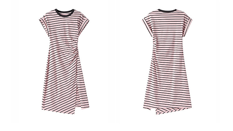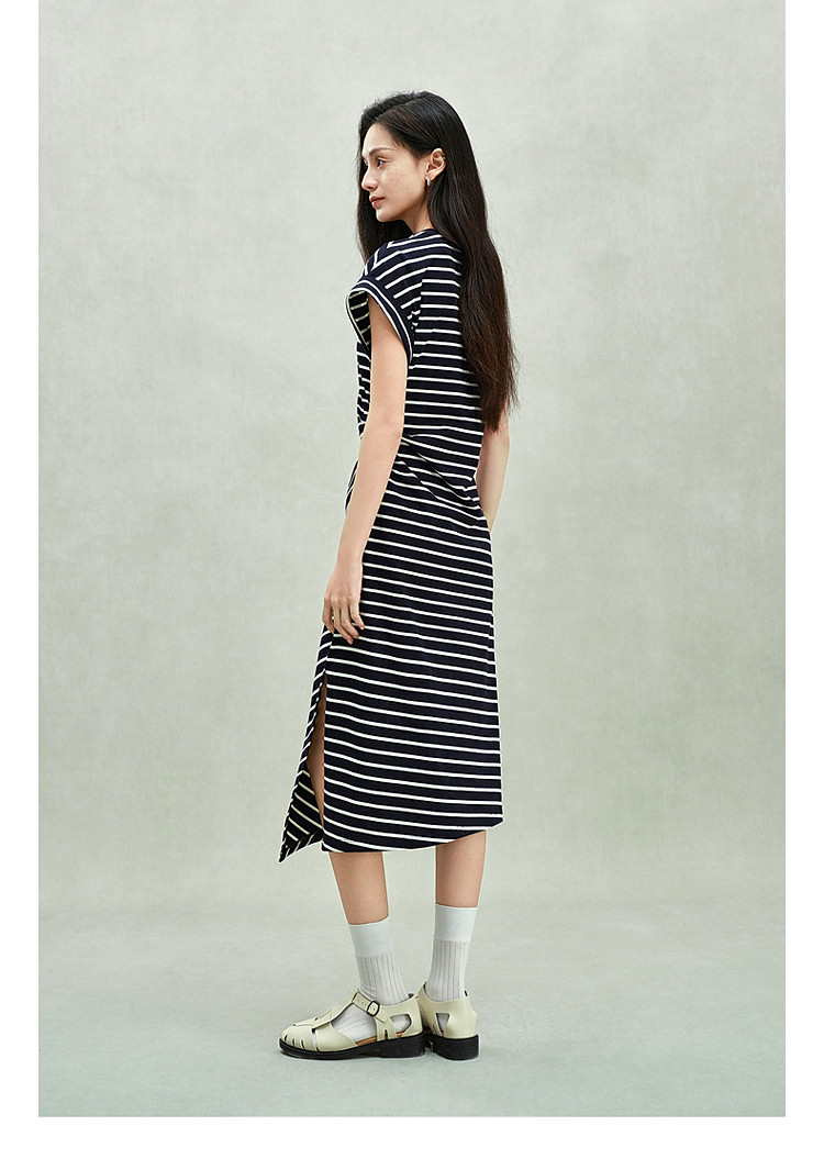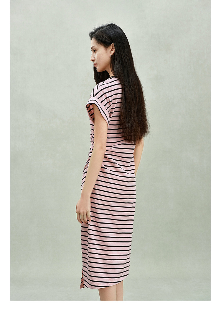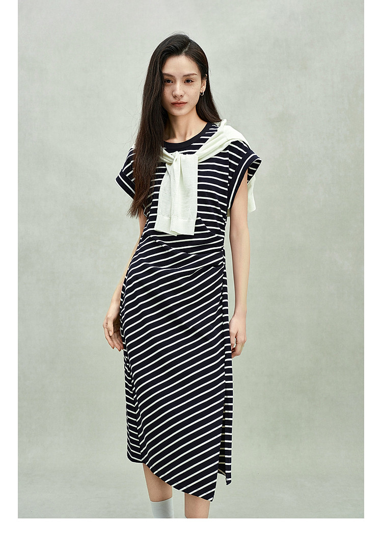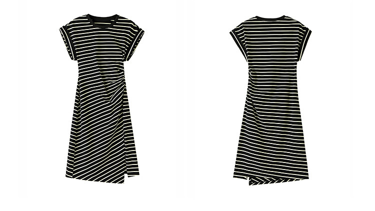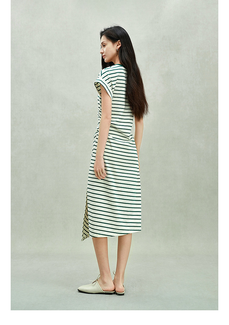 商品名称:限定系列OCH.春装 收褶开衩休闲纯棉条纹不规则连衣裙 998415