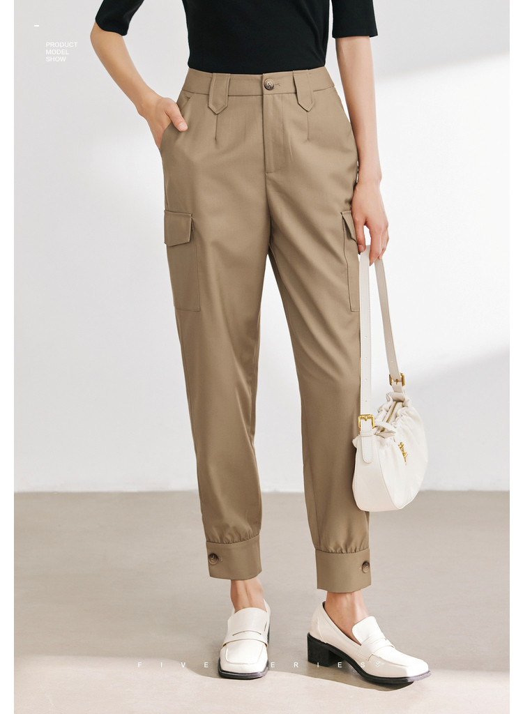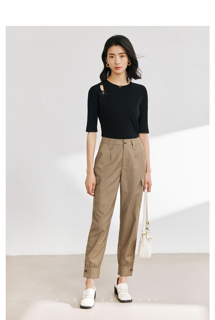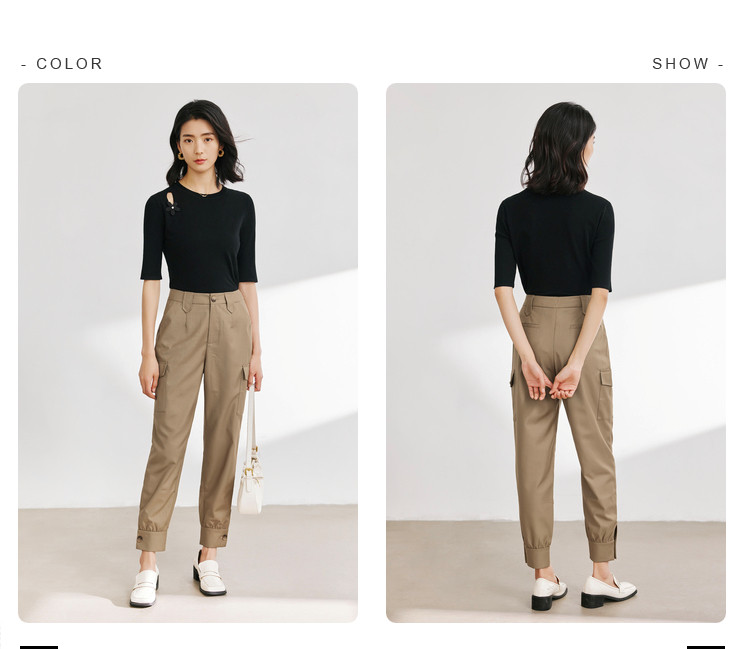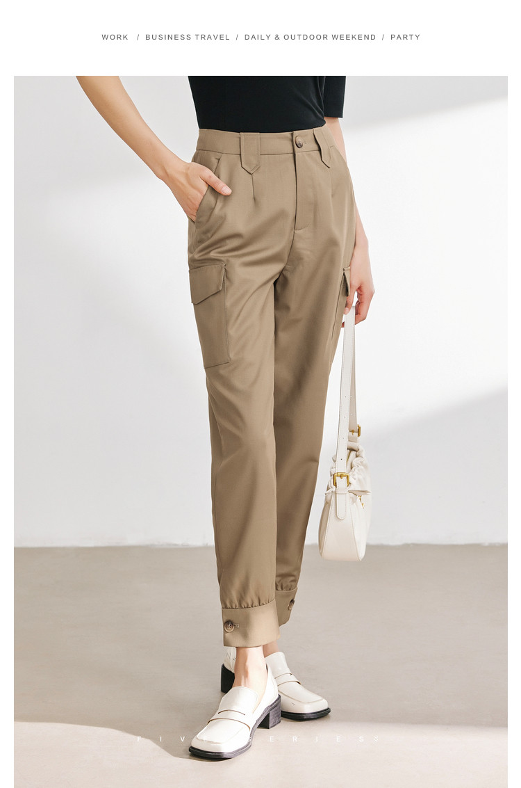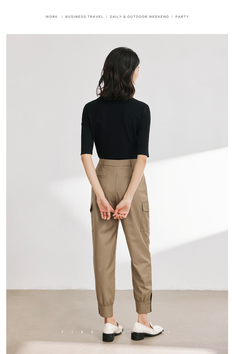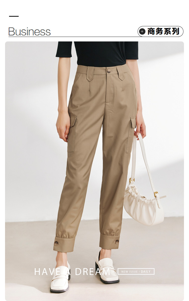 商品名称:休闲纯色工装裤女舒适通勤裤子女百搭设计感显瘦简约休闲裤子 660739