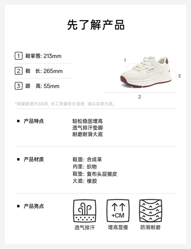 商品名称:女鞋运动休闲鞋简约轻简小白鞋女休闲鞋运动鞋女增高休闲鞋 319951