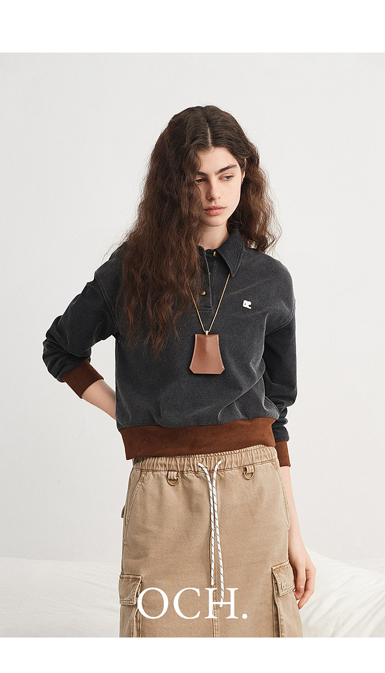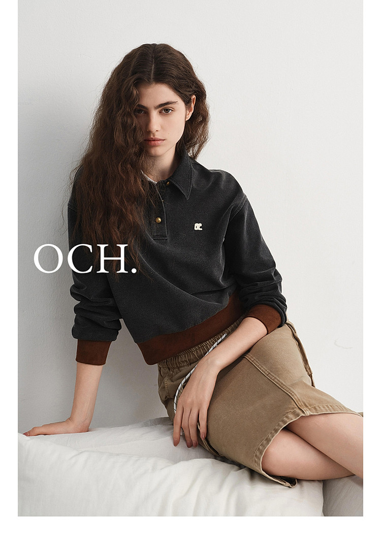 限定系列OCH.春装 弹力针织长袖T恤休闲上衣翻领卫衣女 839759