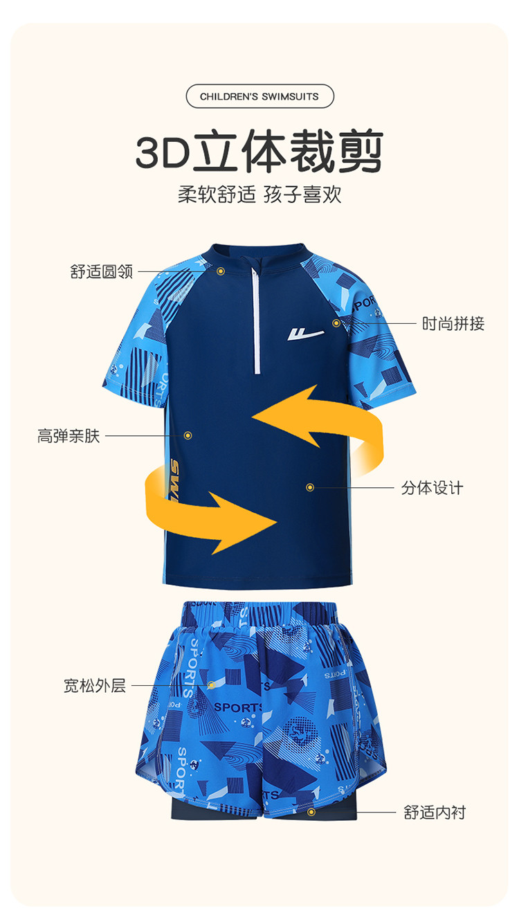 商品名称:儿童泳衣男童分体男孩游泳衣中大童舒适温泉泳裤套装男孩游泳套装 626579