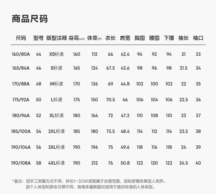 | 尺码 | 衣长(cm) | 肩宽(cm) | 腰围(cm) | 袖长(cm) | 胸围(cm) | 下摆围(cm) | 号型 |