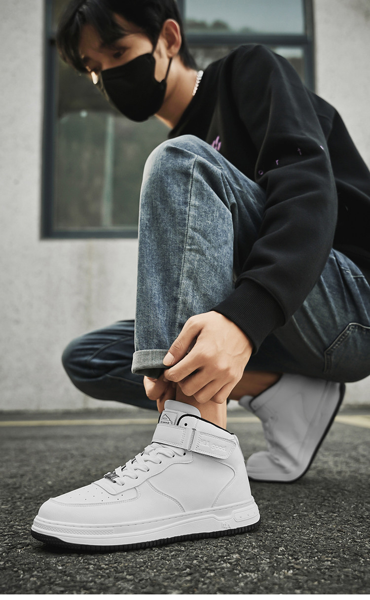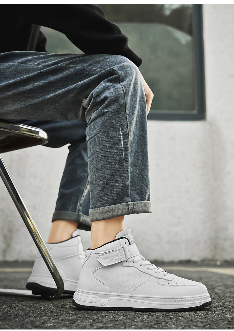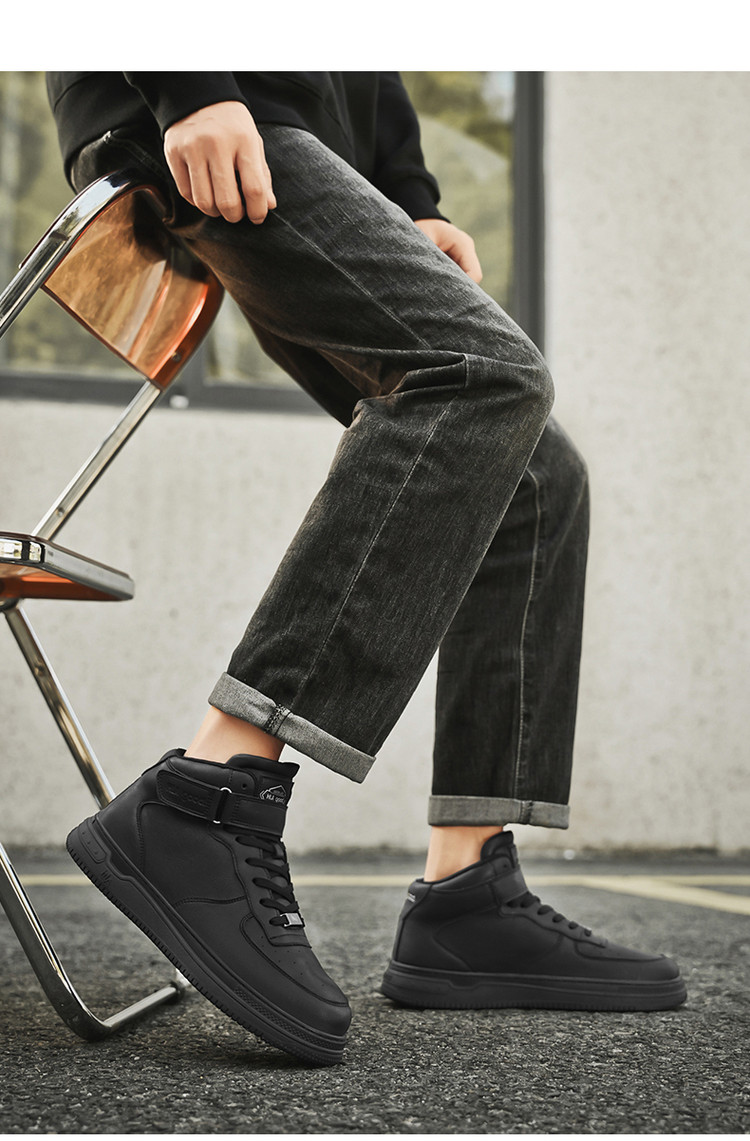 商品名称:男鞋板鞋2025新款经典简约纯色中帮魔术贴厚底男士休闲鞋板鞋 096335