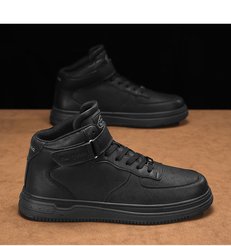 男鞋板鞋2025新款经典简约纯色中帮魔术贴厚底男士休闲鞋板鞋 096335