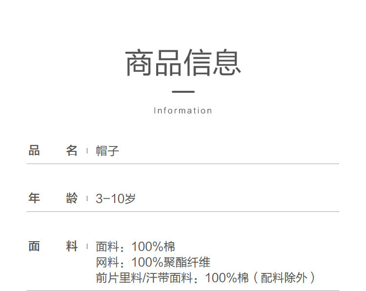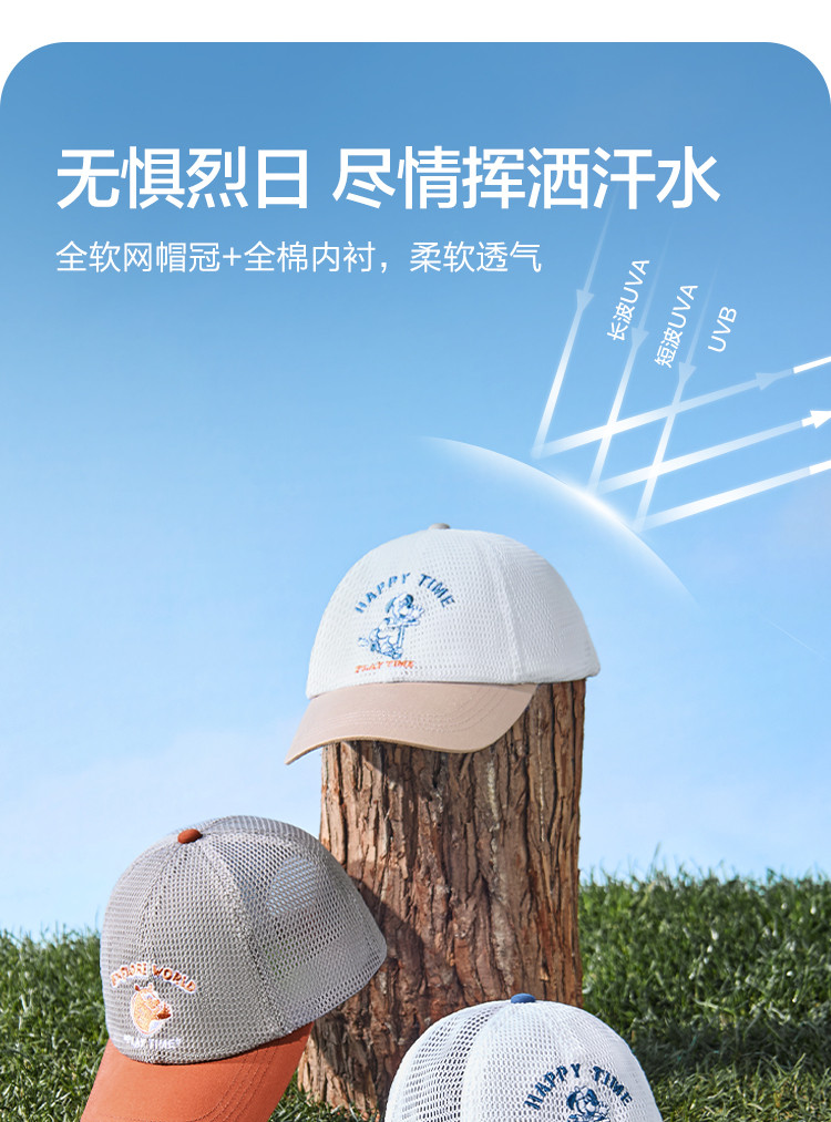 商品名称:儿童棒球帽夏季新款男童女童帽子学生外出防晒帽遮阳帽网眼透气 017093