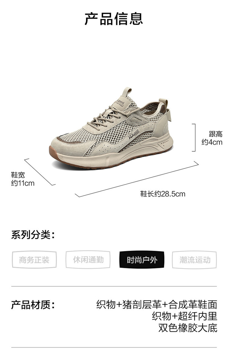 商品名称:男鞋2025新款夏季透气户外时尚透气舒适工装鞋休闲健步运动鞋 882063
