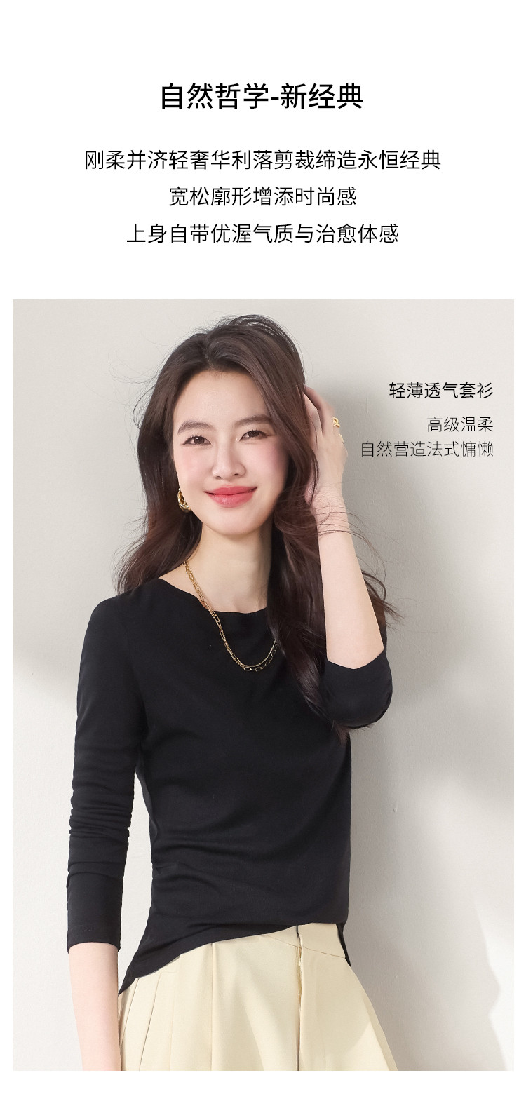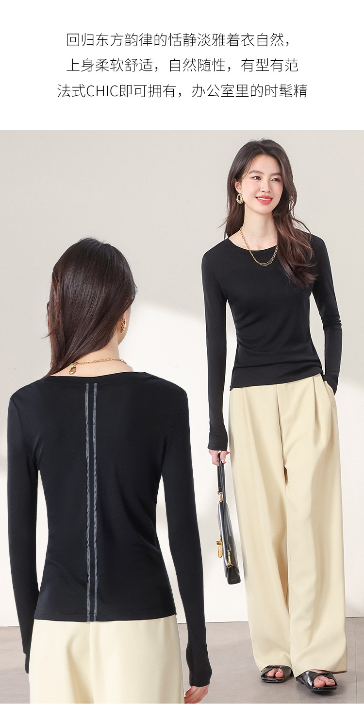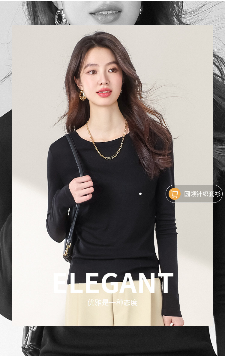 商品名称:【含桑蚕丝】圆领纯色针织打底衫长袖休闲百搭针织套衫 788371