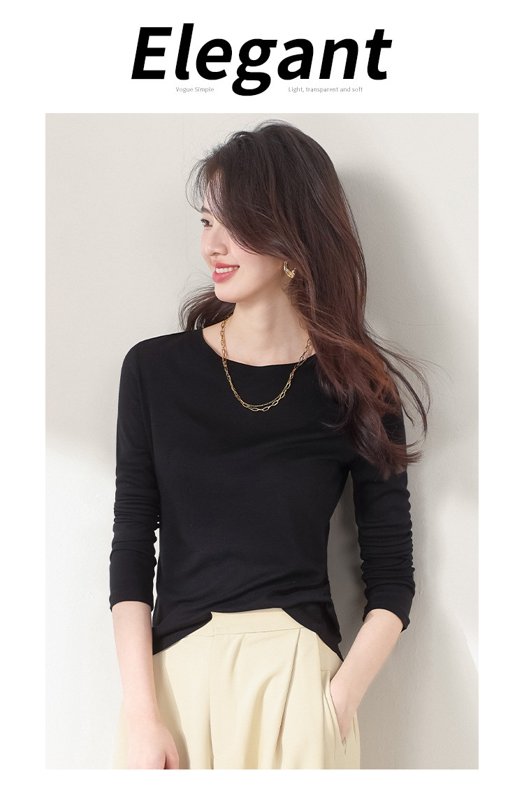 【含桑蚕丝】圆领纯色针织打底衫长袖休闲百搭针织套衫 788371