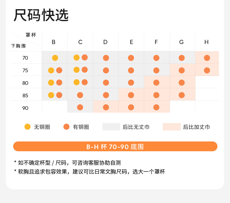 | 尺码 | 下胸围(cm) | 上胸围(cm) |
