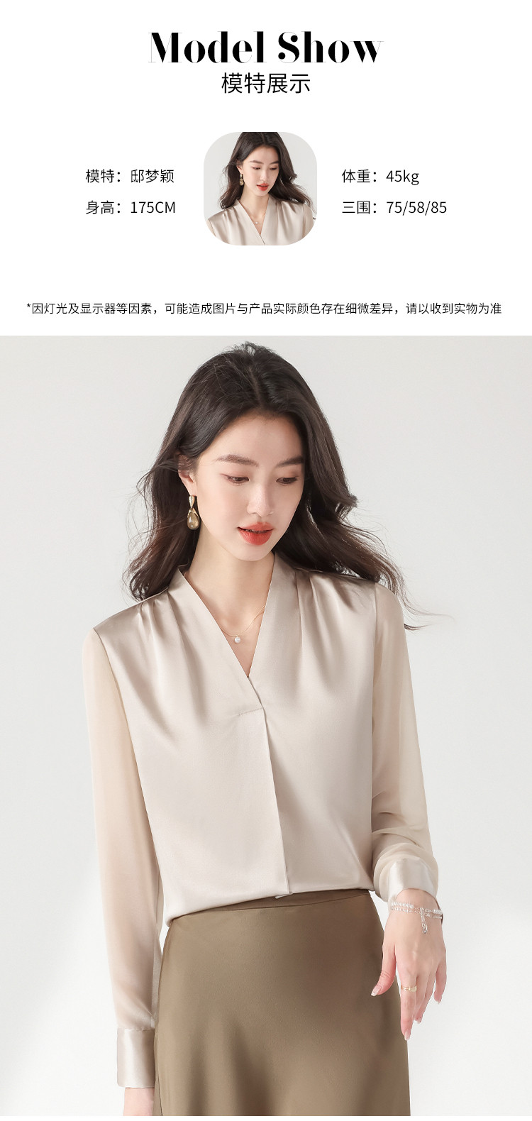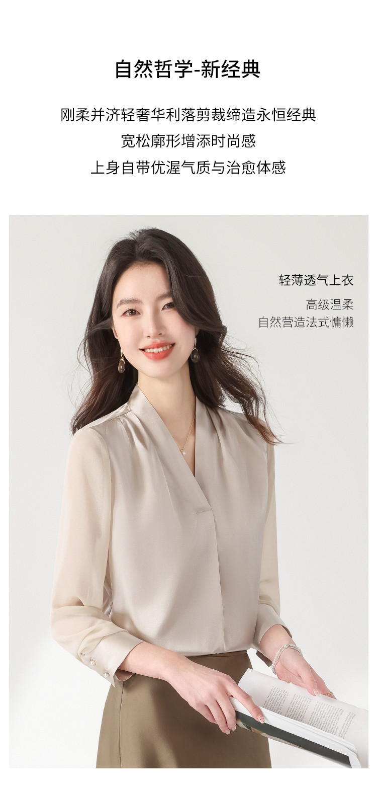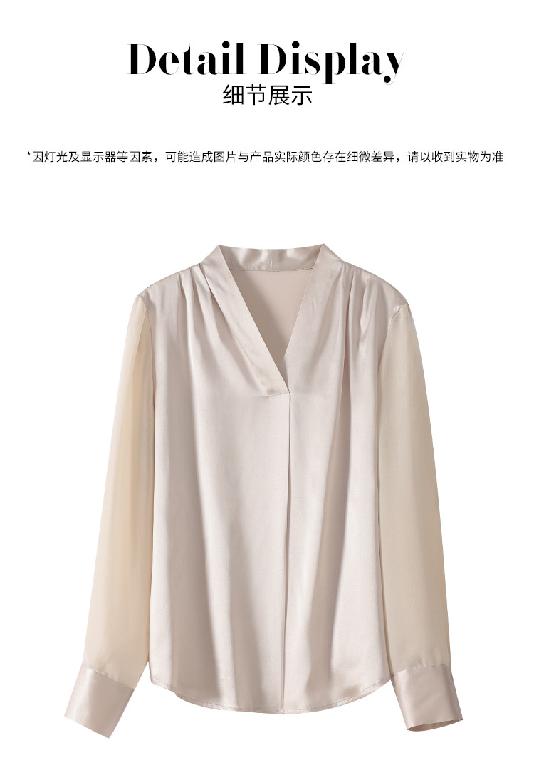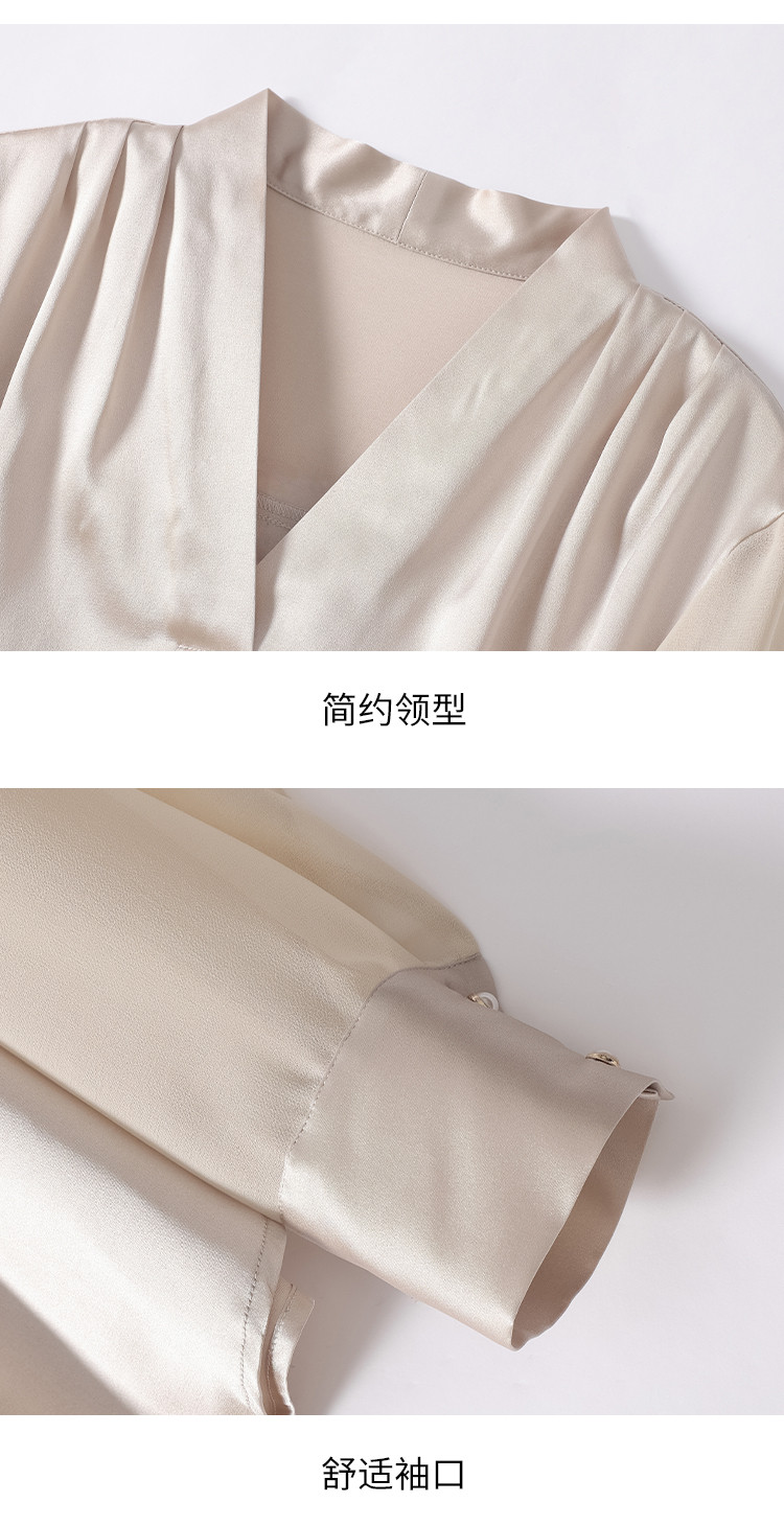 商品名称:【桑蚕丝】V领纯色桑蚕丝衬衣舒适休闲长袖女式衬衫气质夏款上衣 421331
